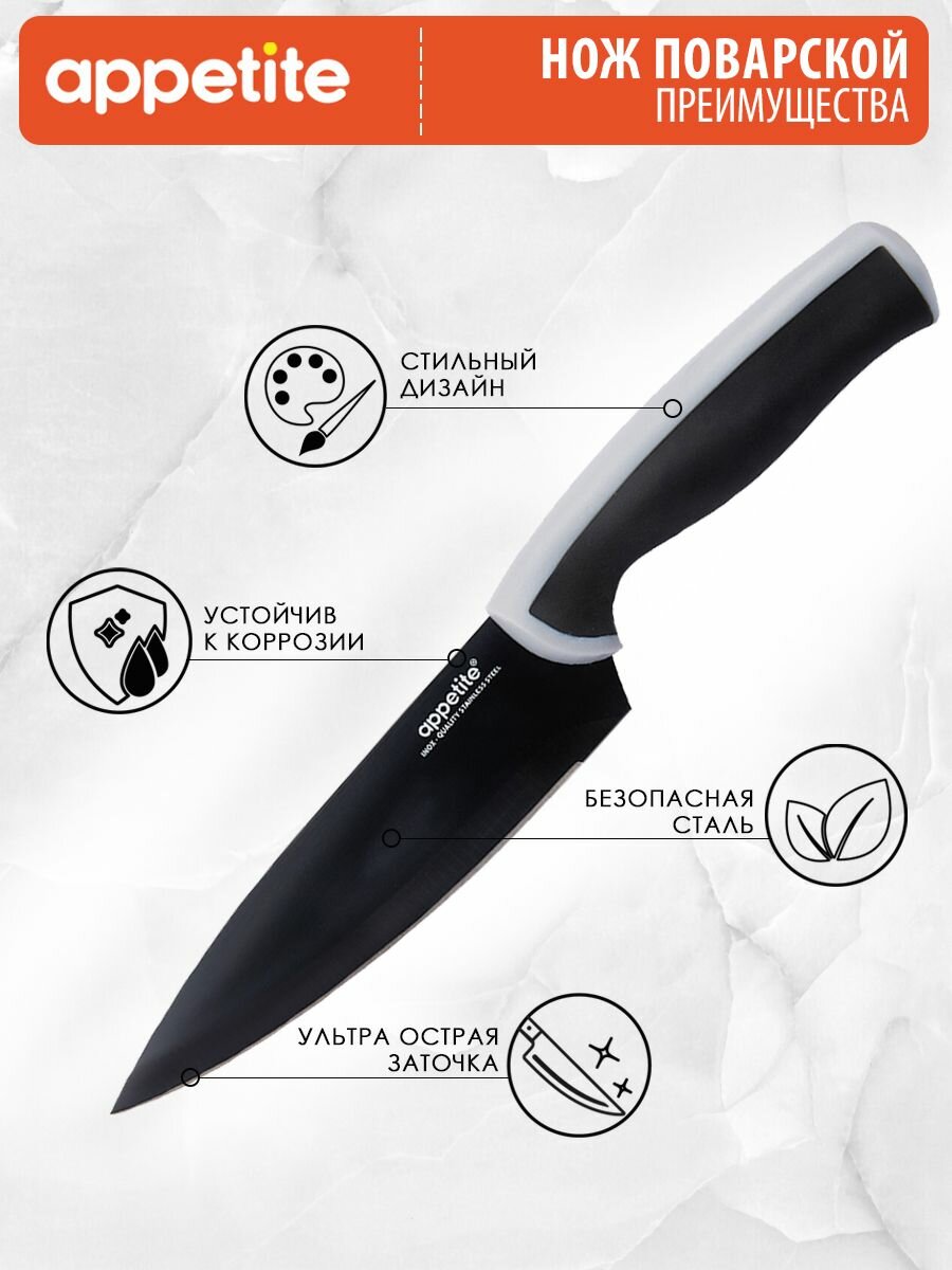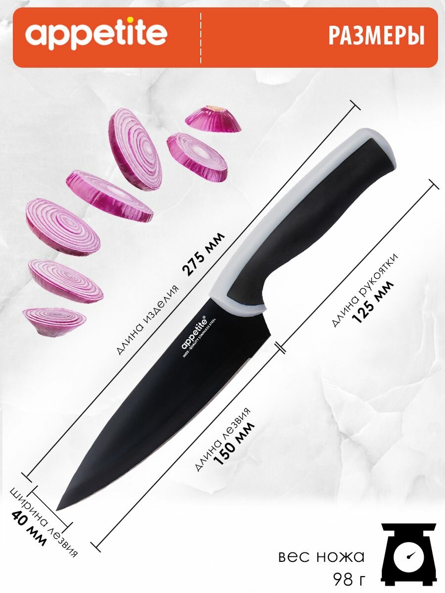 Нож из нержавеющей стали Эффект поварской 15см серый ТМ Appetite информация: