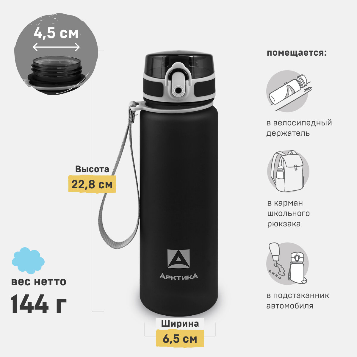 Бутылка для воды Арктика 720-500, 500 мл, черная матовая, с ситечком информация:
