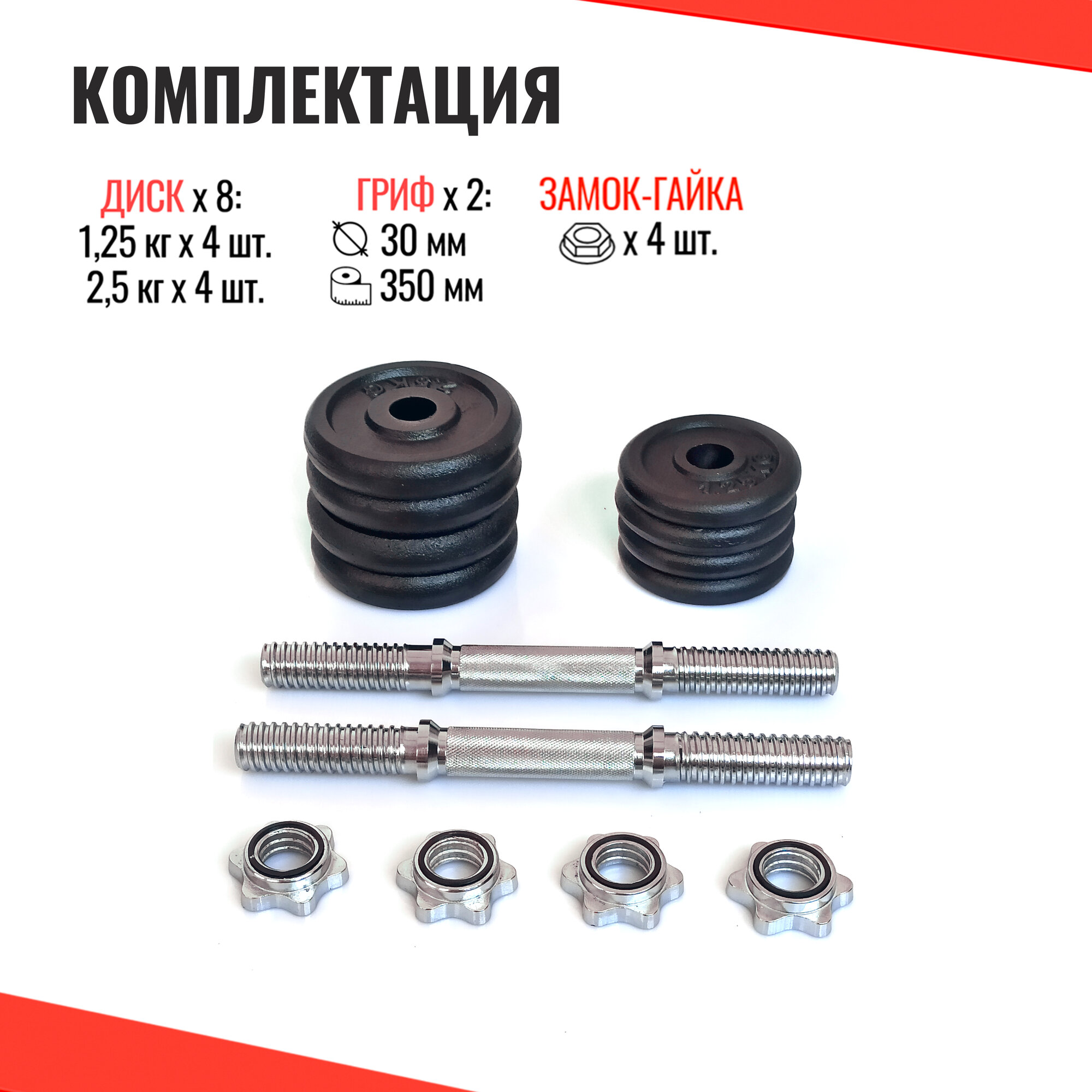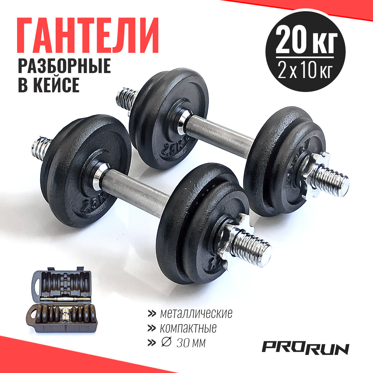 10 цен на Гантели разборные ProRun, 20 кг, чугунные, в кейсе