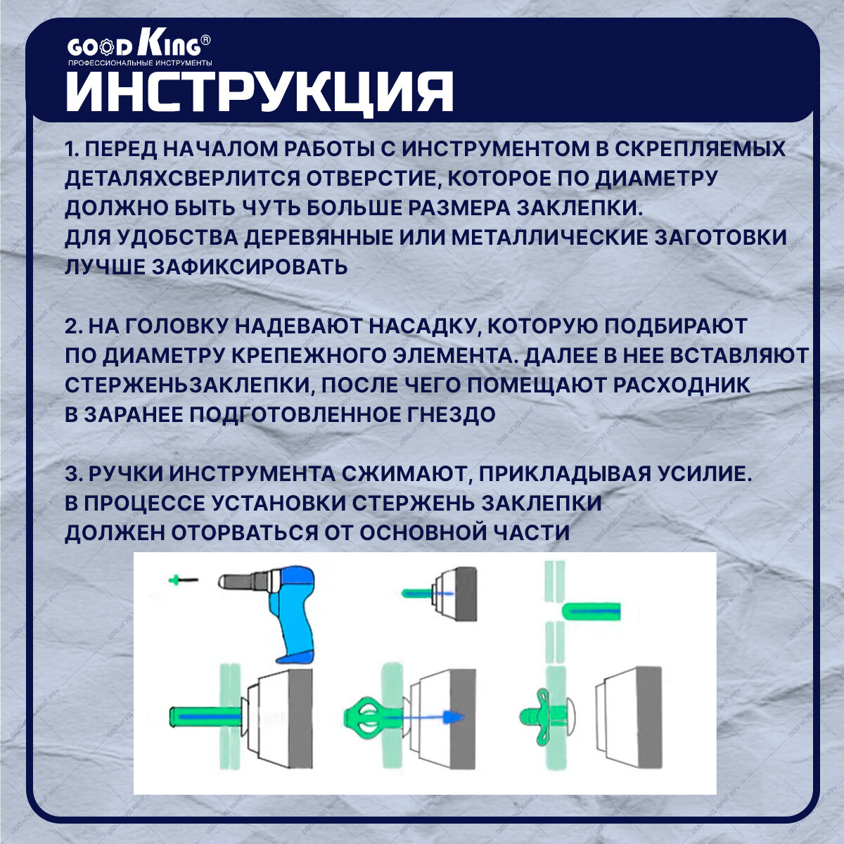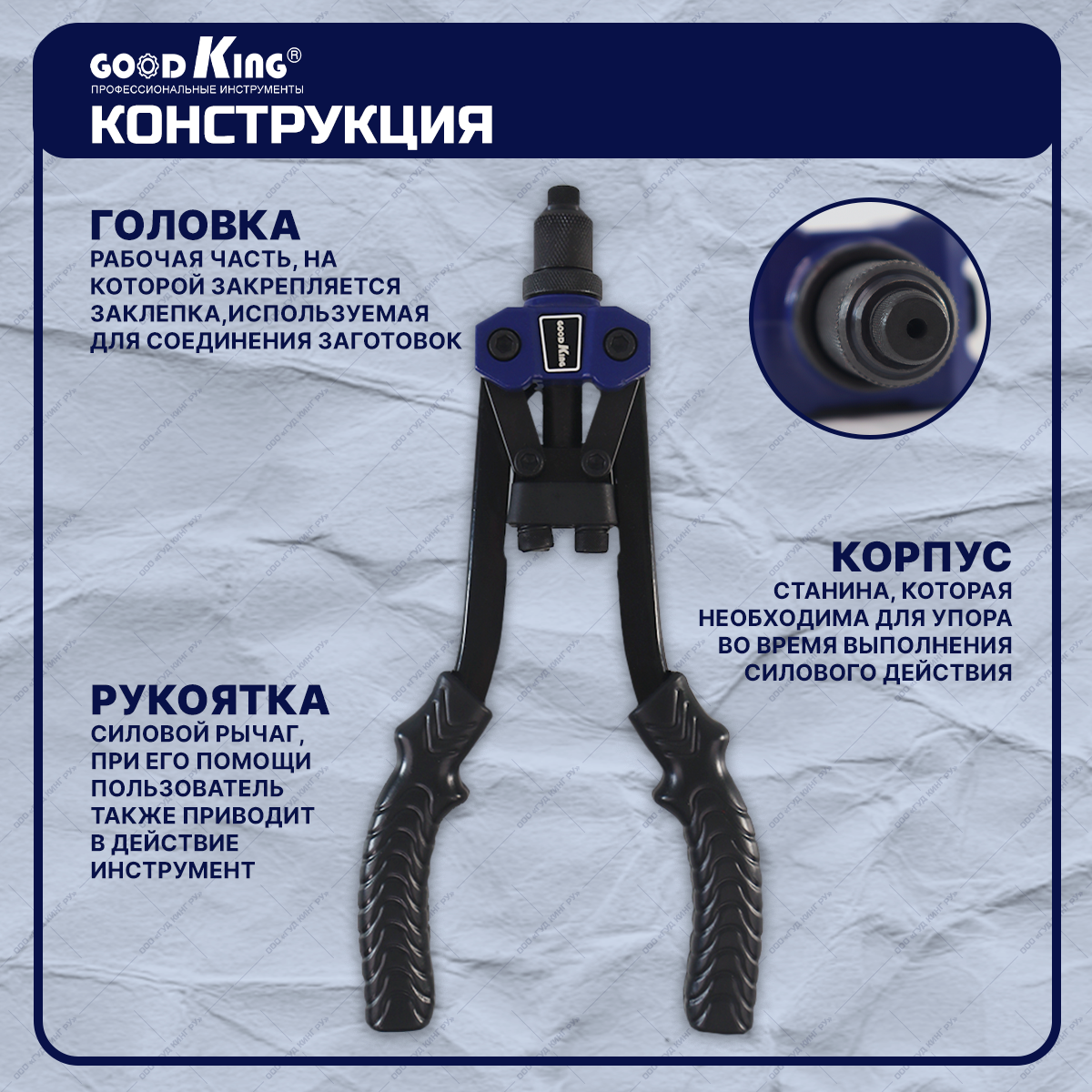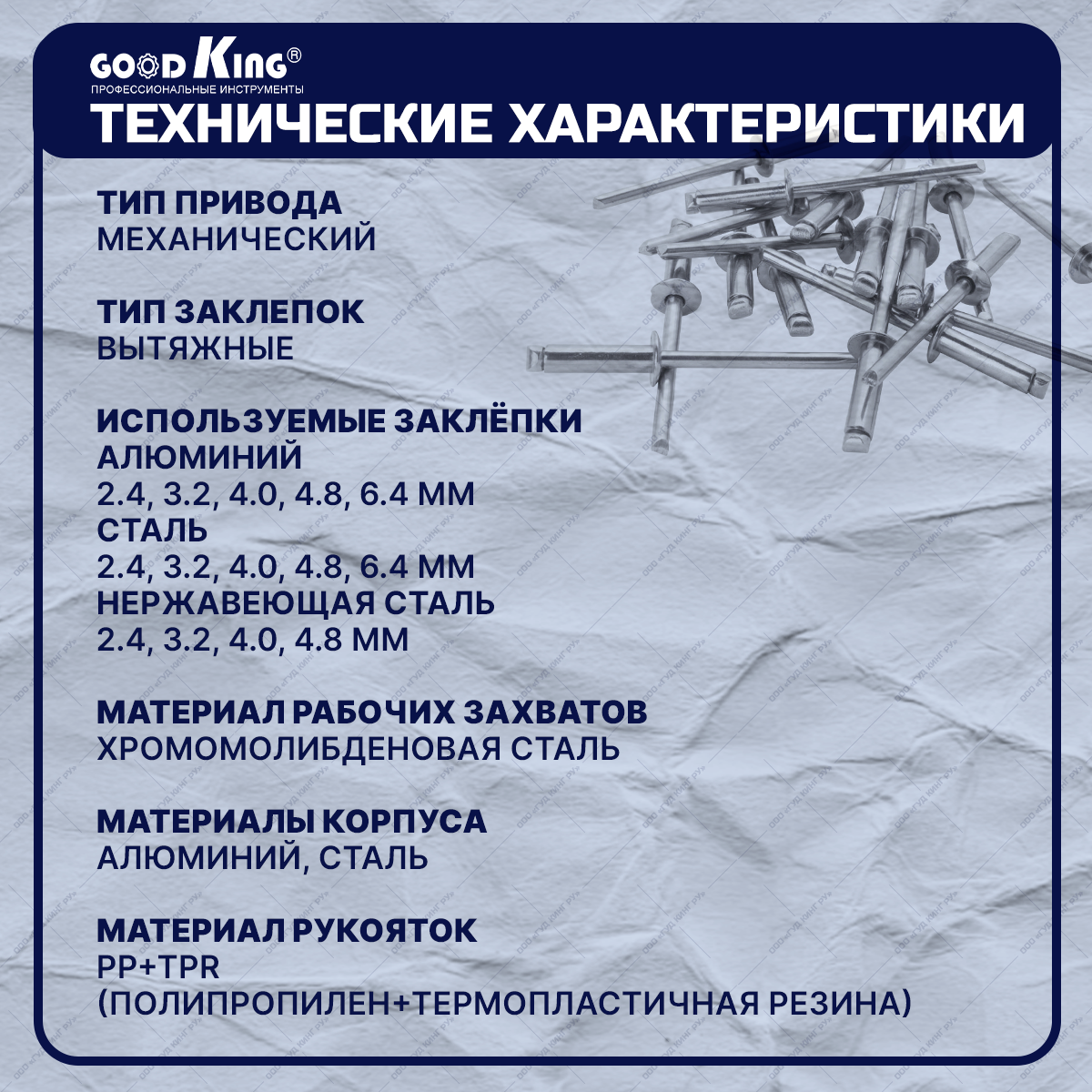Заклепочник двуручный для вытяжных заклепок Goodking PZ-20001 информация: