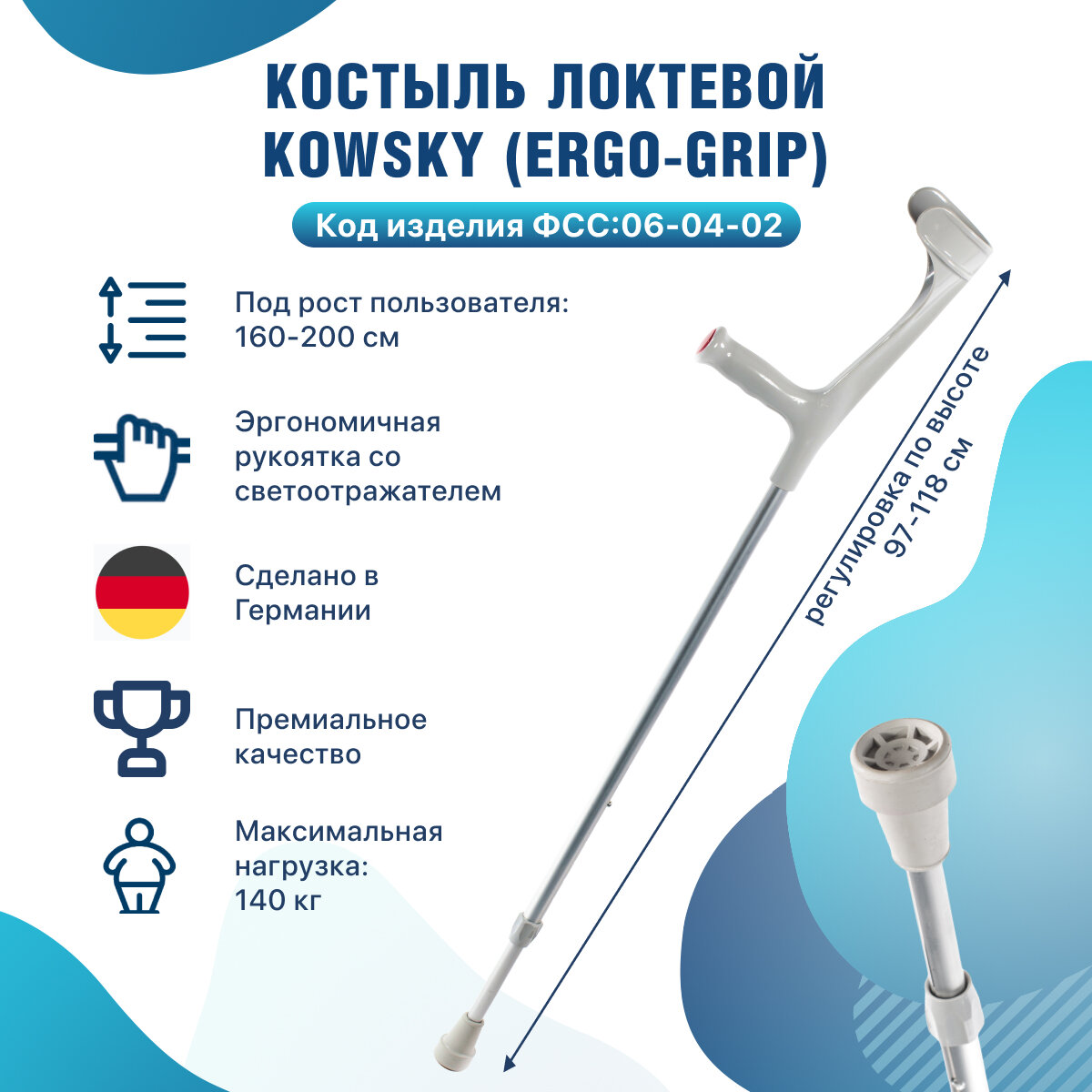 Отзывы на Костыль локтевой канадка с опорой под локоть Kowsky 222KL-Standart Ergo-Grip серый