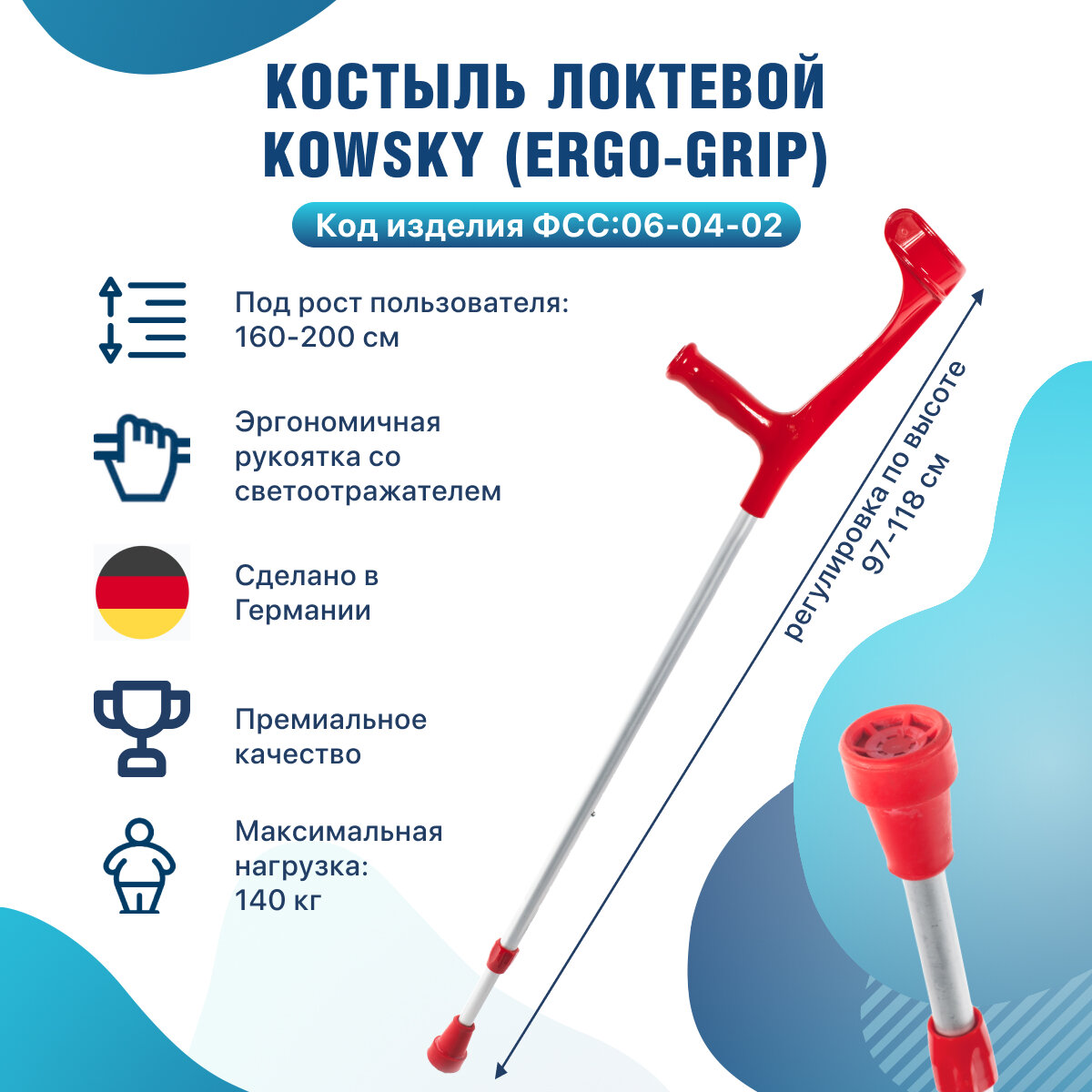 Отзывы на Костыль локтевой канадка с опорой под локоть Kowsky 222KL-Standart Ergo-Grip красный