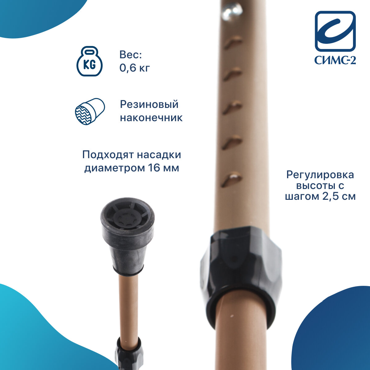 | Дополнительная информация | высота от манжета до ручки - 22 см; высота от ручки до пола - от 77 до 97 см |