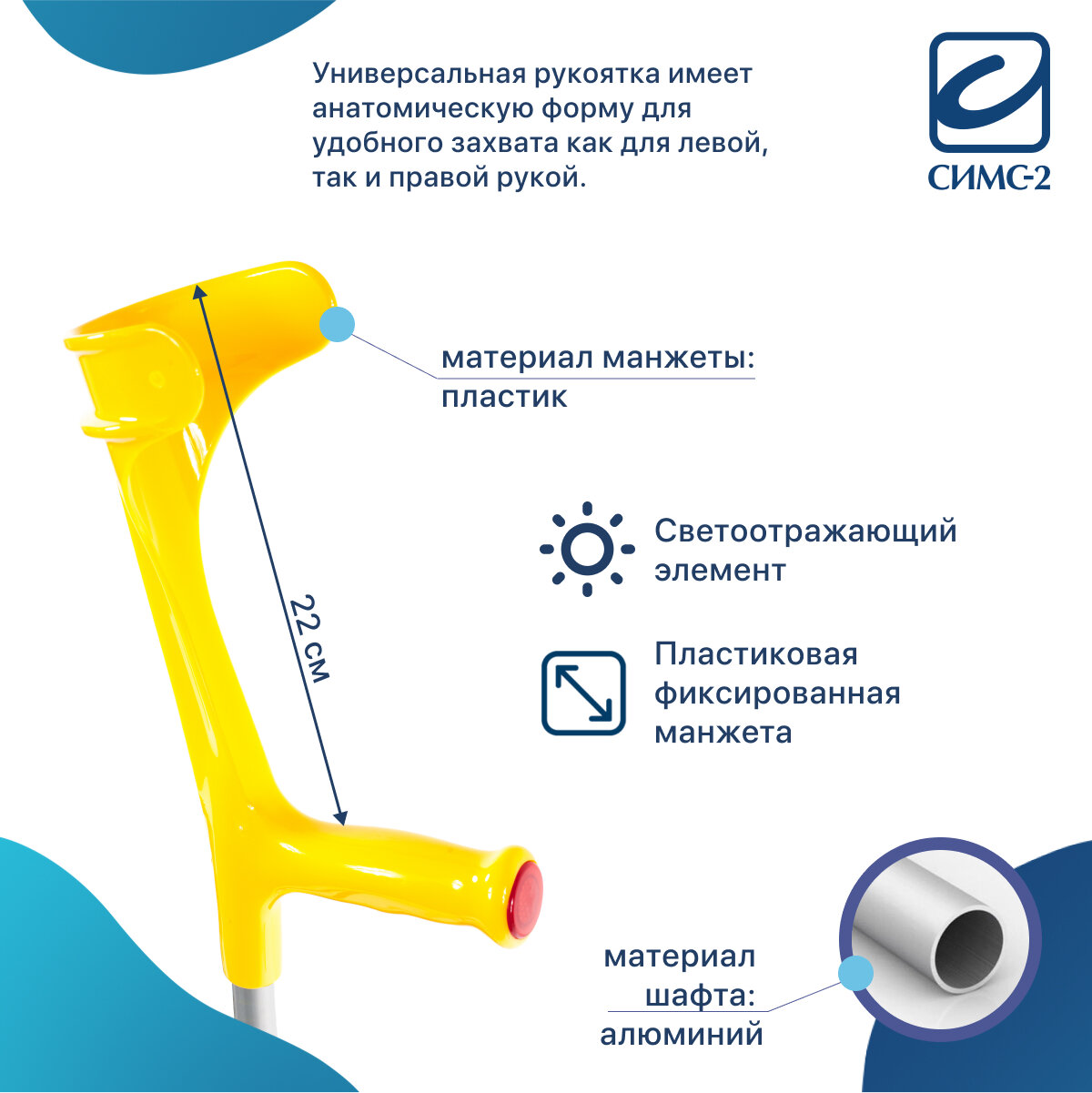 Костыль локтевой канадка с опорой под локоть Kowsky 222KL-Standart Ergo-Grip желтый информация: