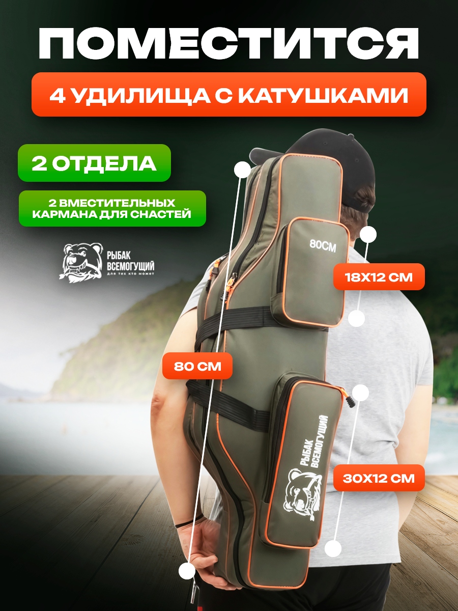 10 цен на чехол для удочек и спиннингов 80 см 2 отделения