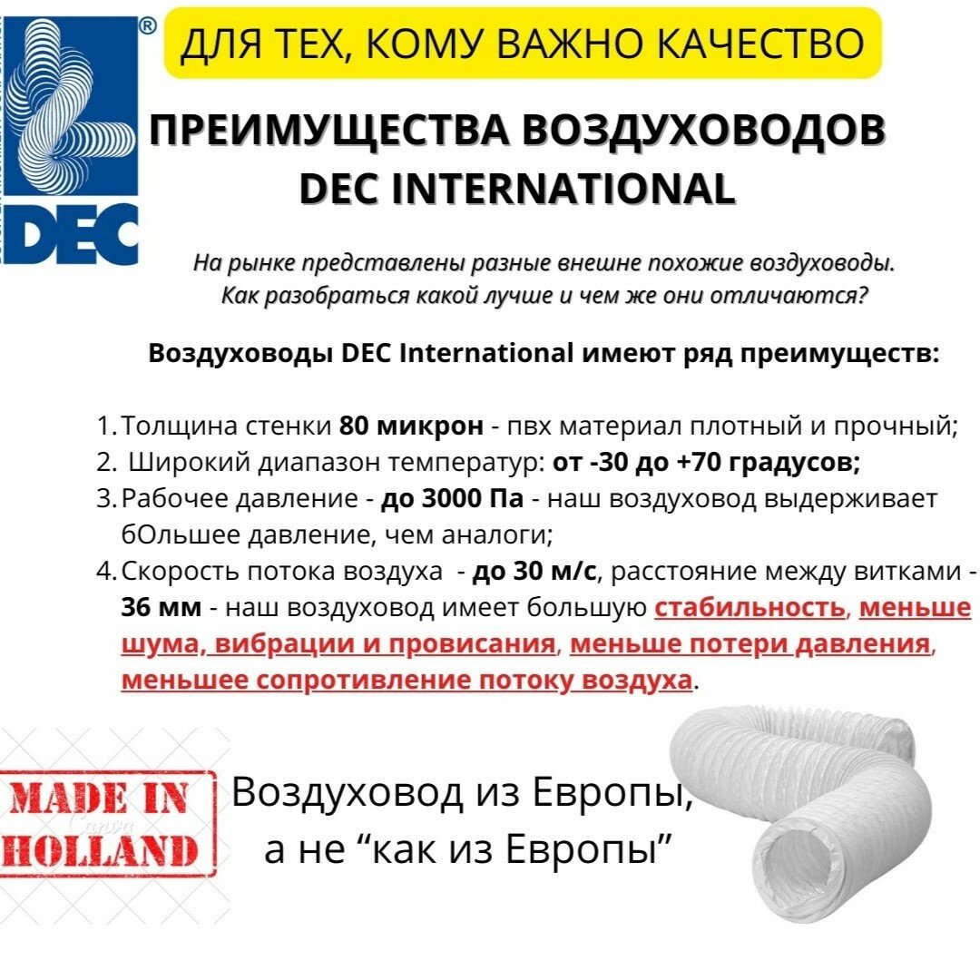 Голландский полимерный (пвх) гибкий воздуховод DEC International PVC 127мм x 3м, белый информация: