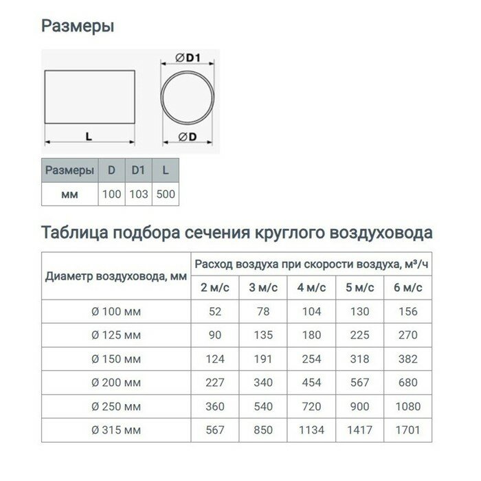 Канал круглый, вентиляционный ZEIN, d=100 мм, 0.5 м информация: