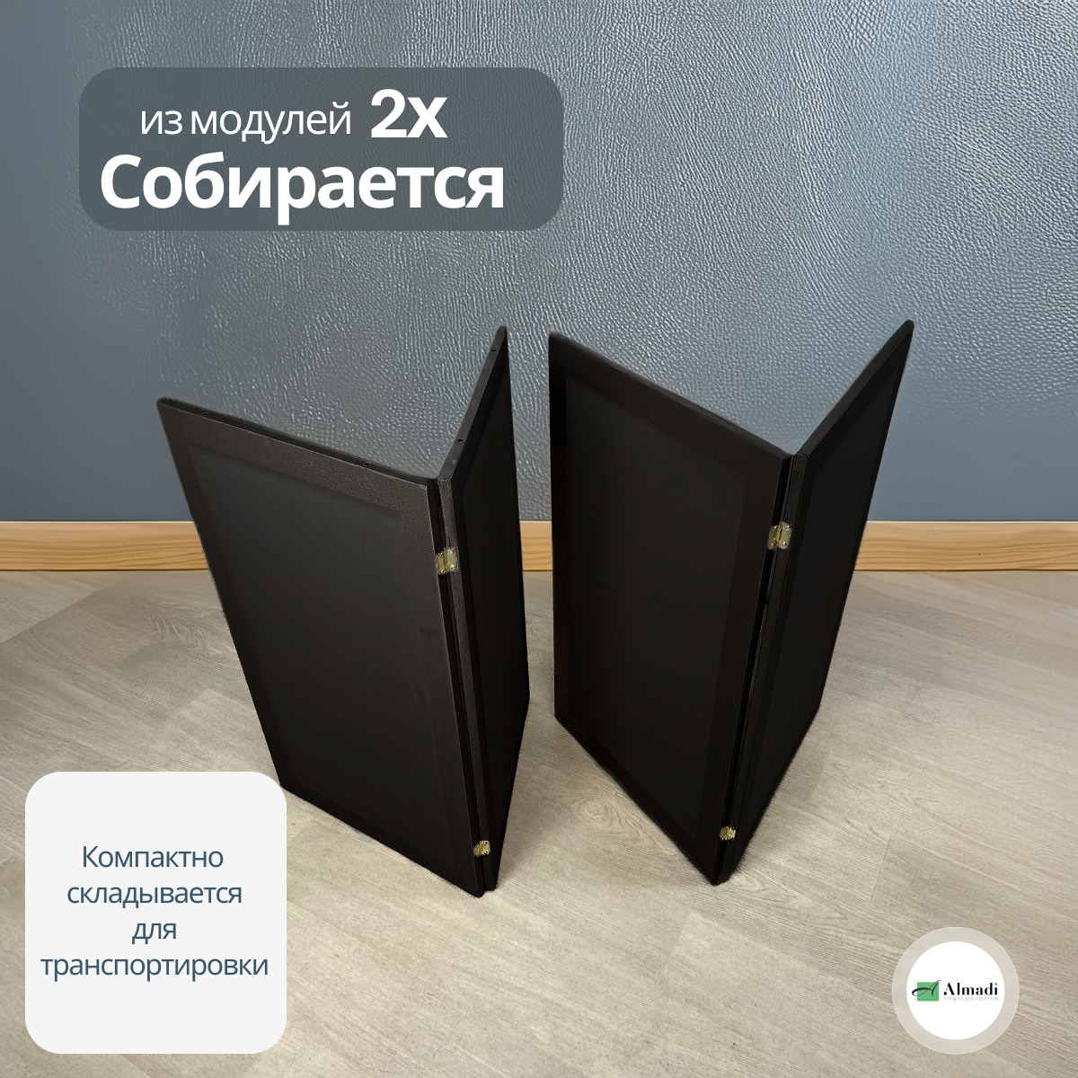 Ширма перегородка для зонирования комнаты черная 2 створки модульная информация: