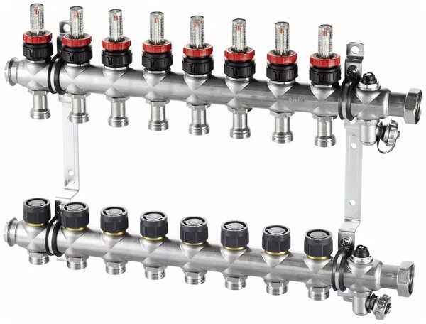 Коллекторная группа с расходомерами из нержавеющей стали для теплого пола