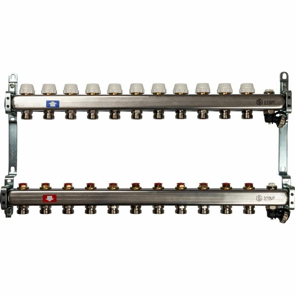 10 цен на Коллектор из нержавеющей стали без расходомеров, с клапаном вып. воздуха и сливом 11 вых. STOUT SMS-0932-000011