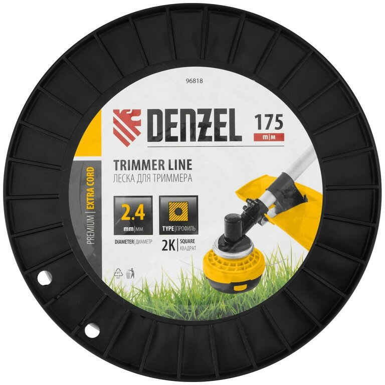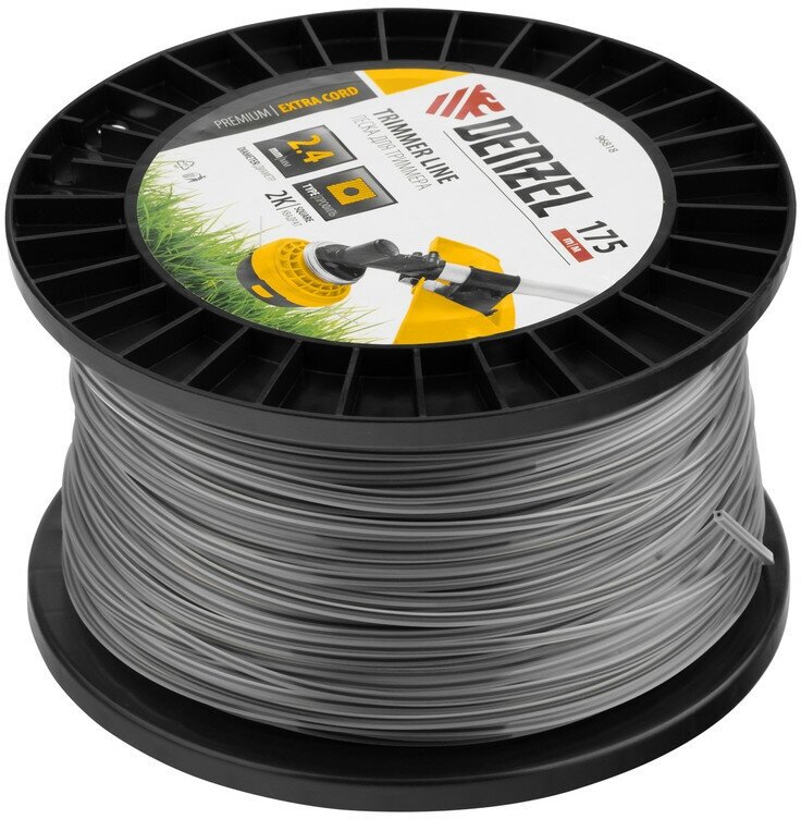 Отзывы на Леска для триммера двухкомпонентная Denzelквадрат 2, 4мм х 175м, на DIN катушке EXTRA CORD 96818