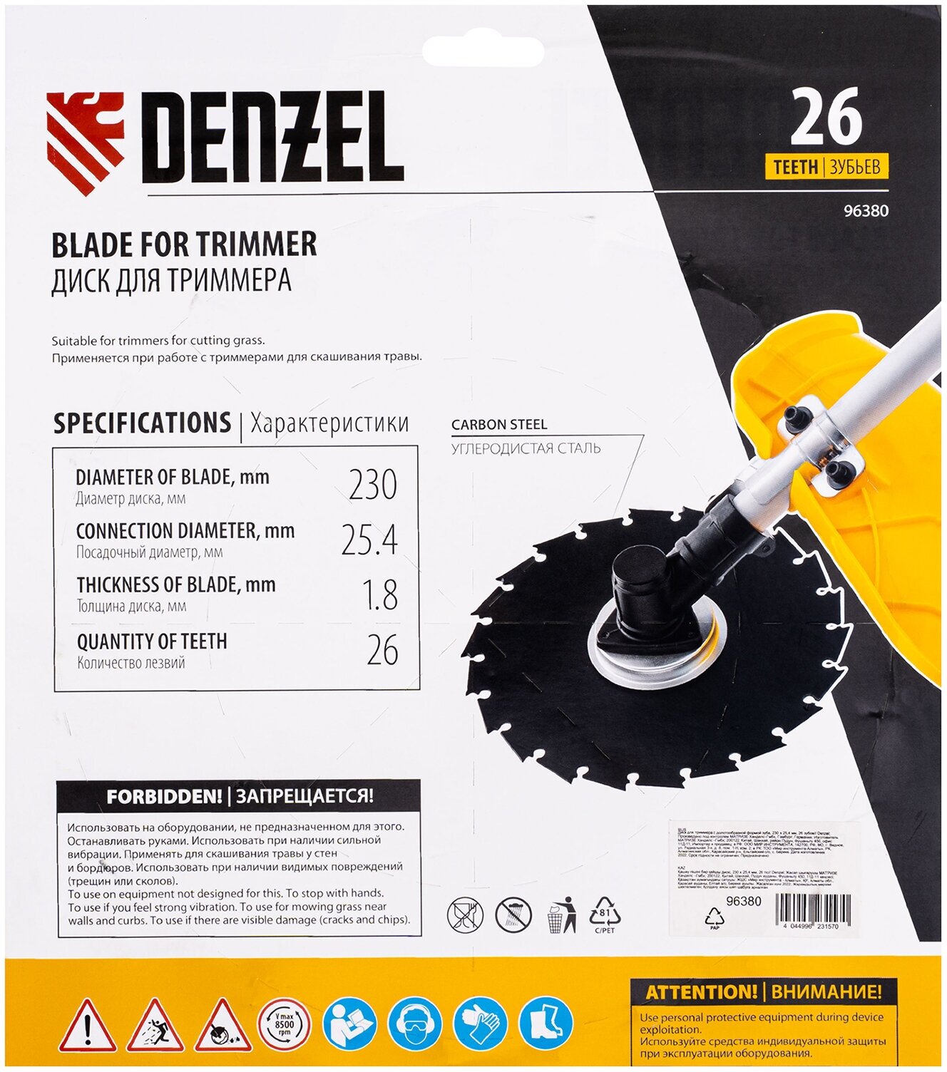 Диск для триммера c долотообразной формой зуба Denzel 230 х 25, 4 мм, 26 зубов 96380