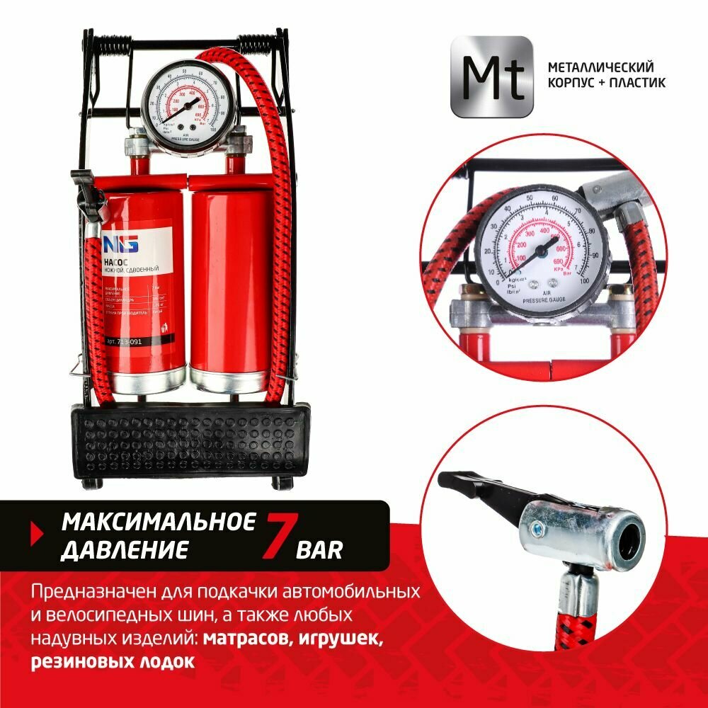 10 цен на Насос ножной NEW GALAXY, сдвоенный, манометр, 2x55x120мм, красный, Дабл