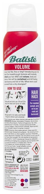 Batiste VOLUME Сухой шампунь 200 мл информация: