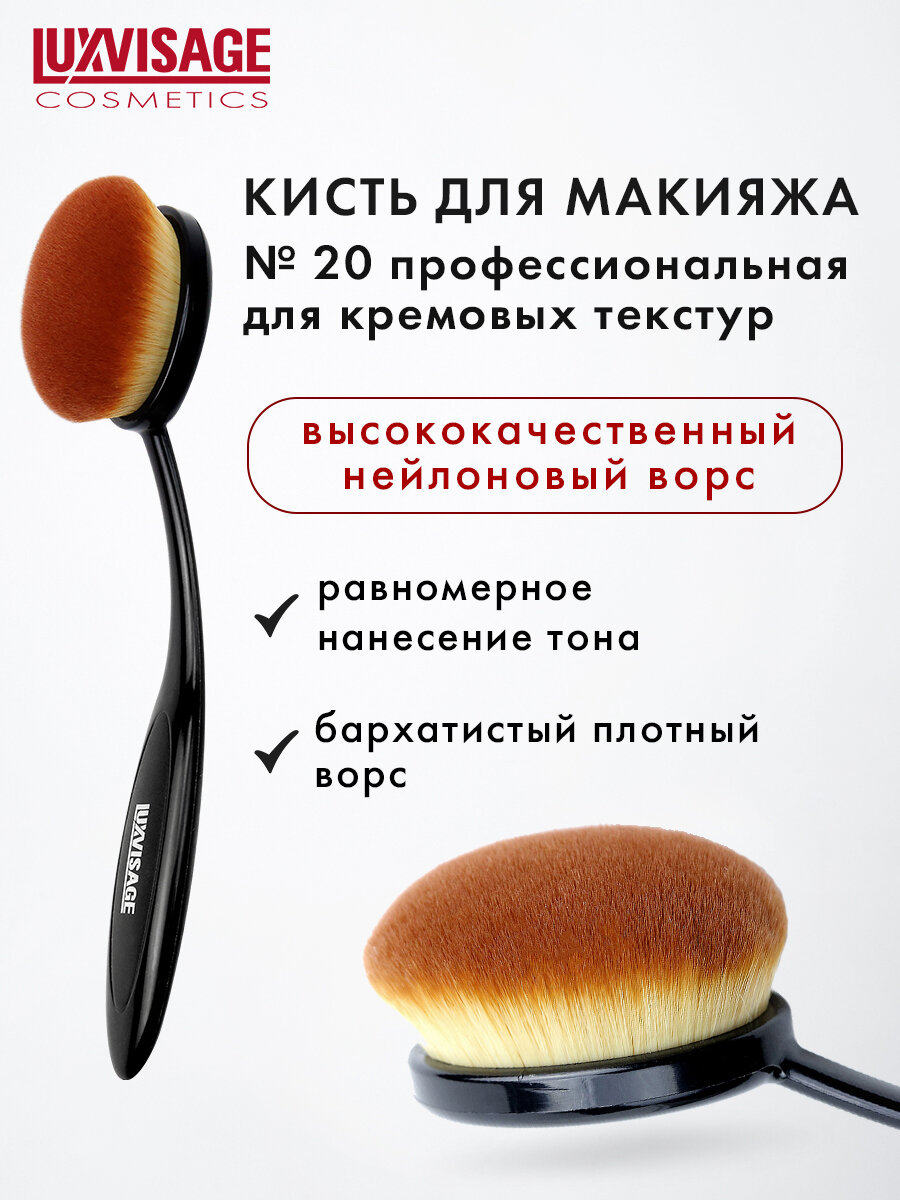 Кисть косметическая LUXVISAGE № 20 профессиональная для кремовых текстур Высококачественный нейлоновый ворс информация: