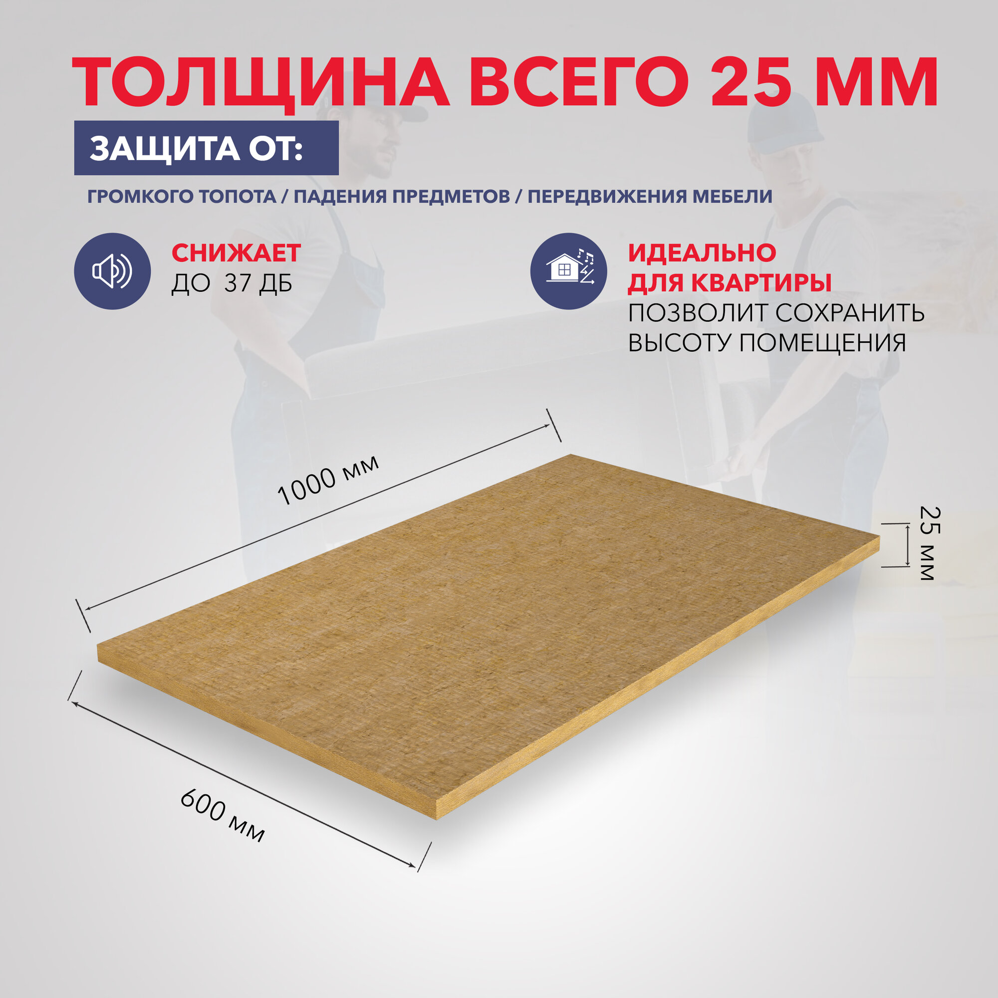 Теплозвукоизоляция Роквул Флор Баттс,25 мм 1 упак 4,8м2 0,12м3 информация: