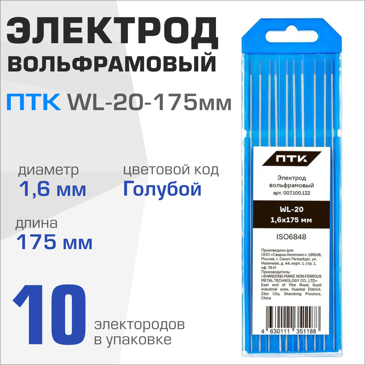 Электрод вольфрамовый ПТК WL-20-175мм 1,6, уп. 10 шт информация: