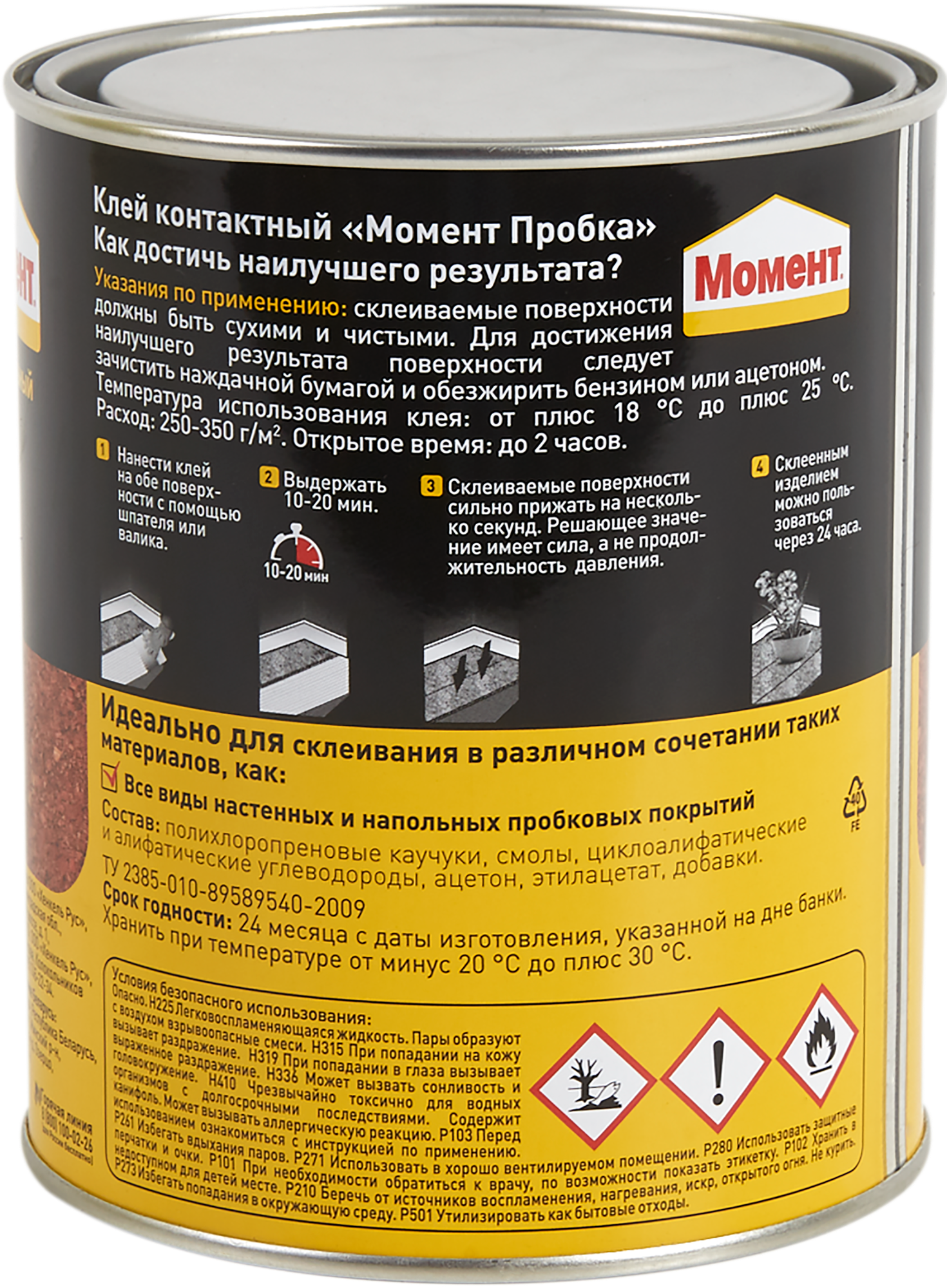 | Дополнительная информация | Клей контактный Момент-пробка 750 мл |