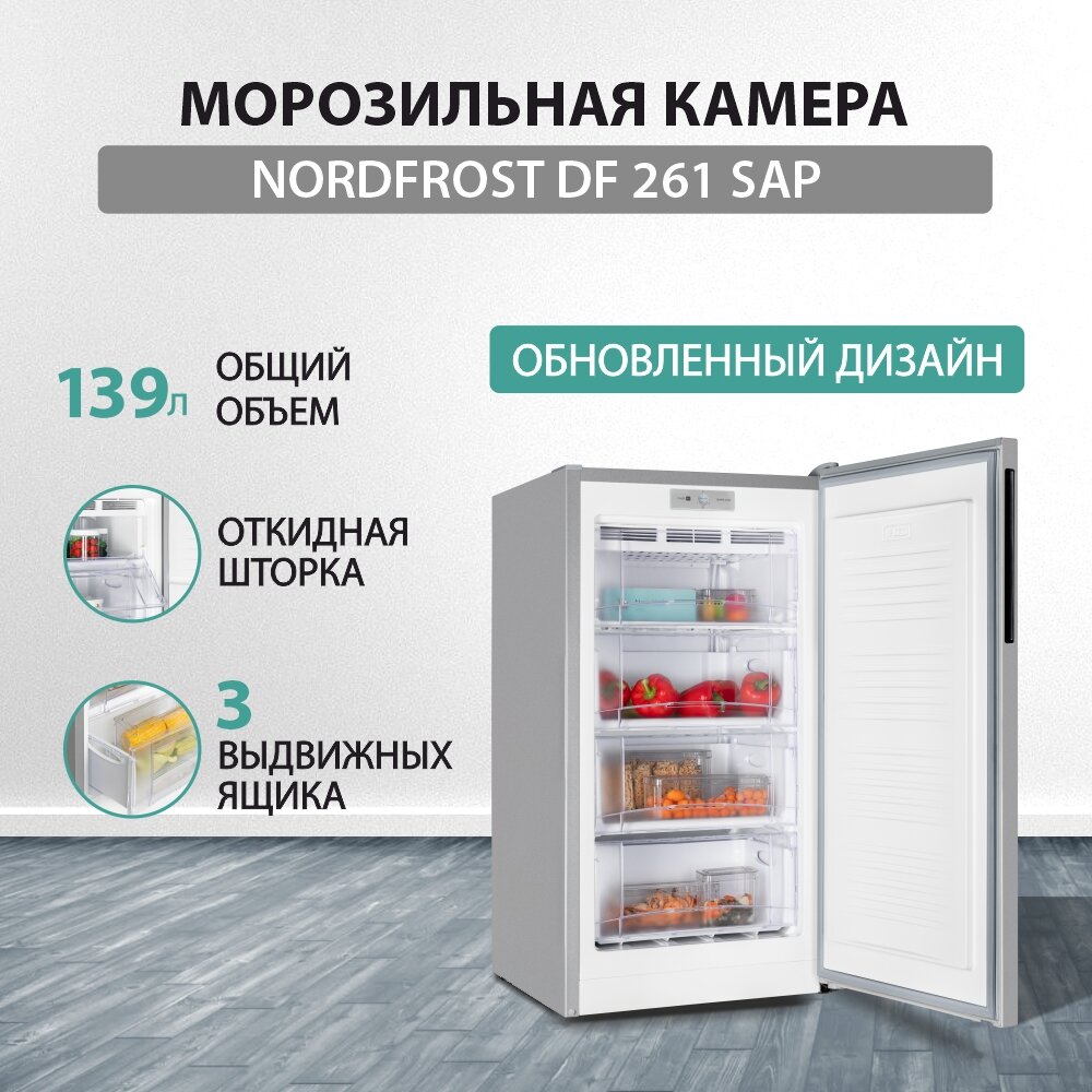 Морозильная камера NORDFROST DF 261 SAP, объем 139 л, серебристый информация:
