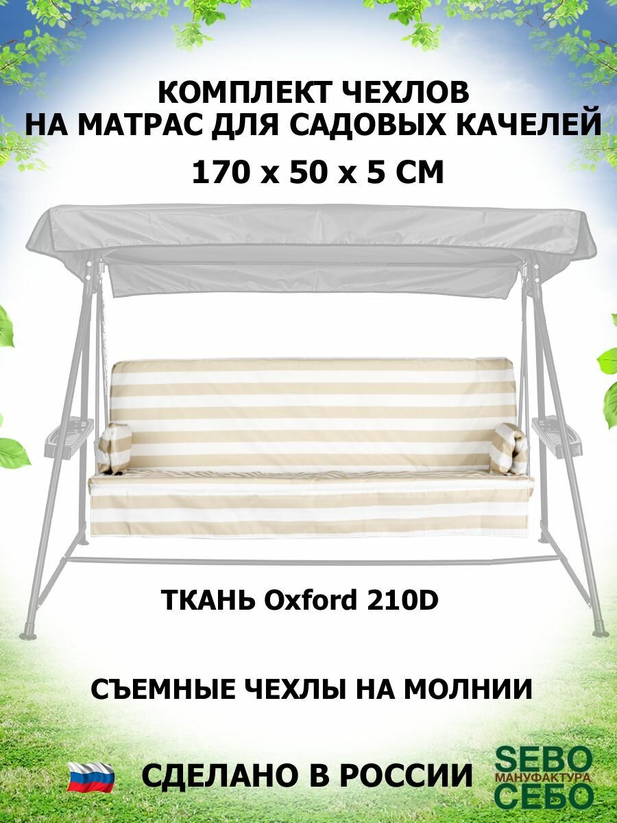 Чехол съемный на матрас для садовых качелей 170х50х5 см, водоотталкивающая ткань, бежево-белый информация:
