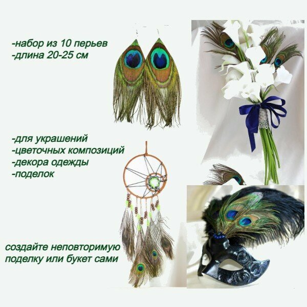Перья павлина натуральные для творчества и рукоделия 10 штук информация: