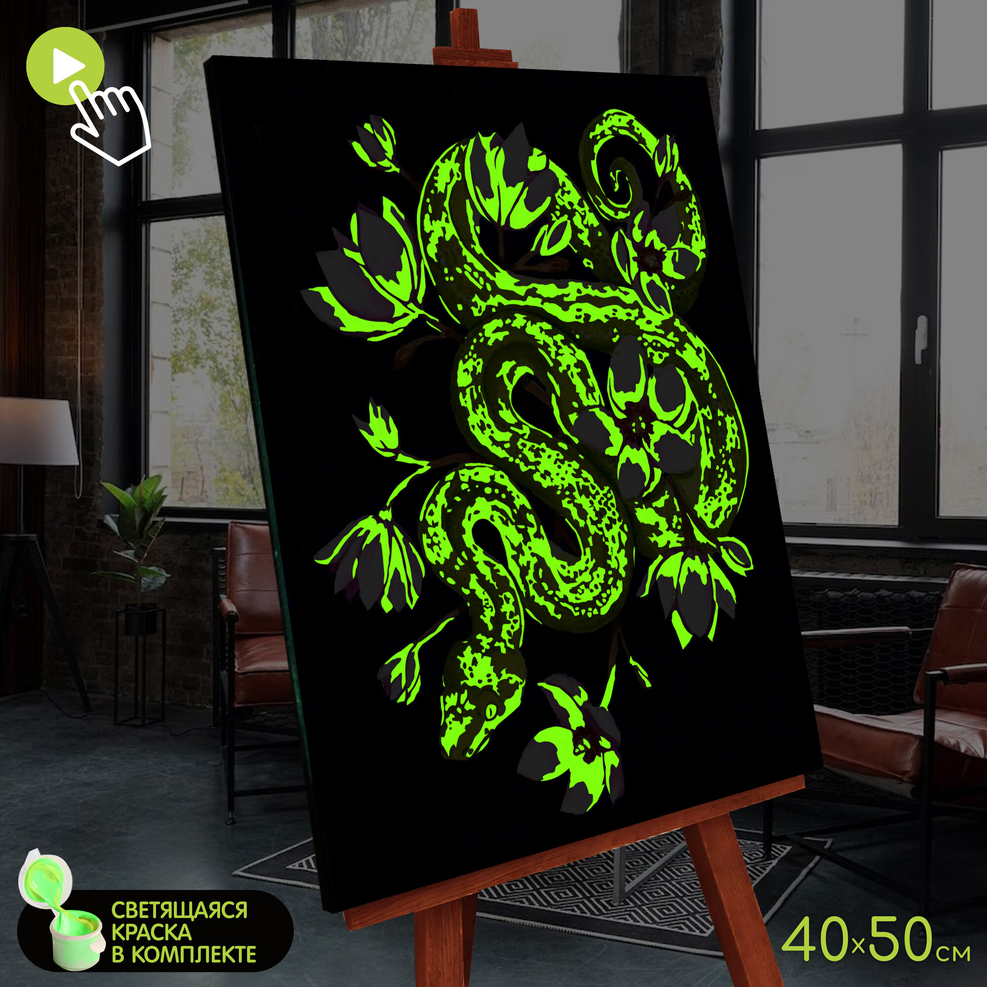 Картина по номерам со светящейся краской (40х50) Питон в цветочном эдеме (17 цветов) FHR0615 информация: