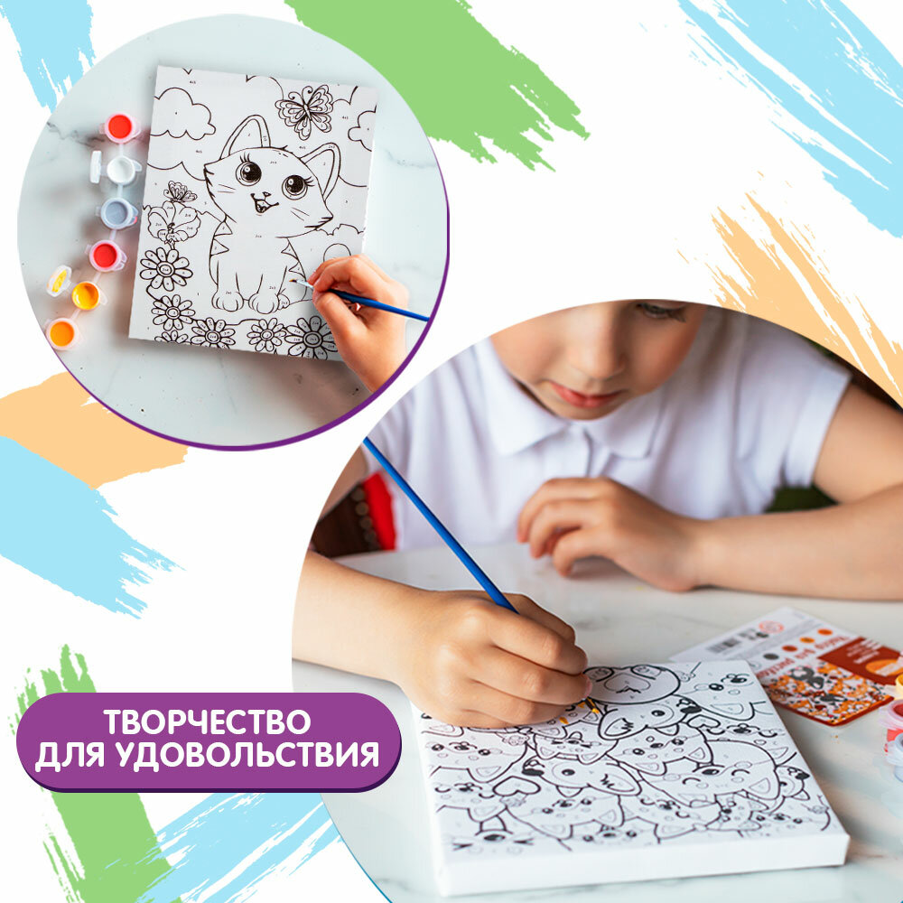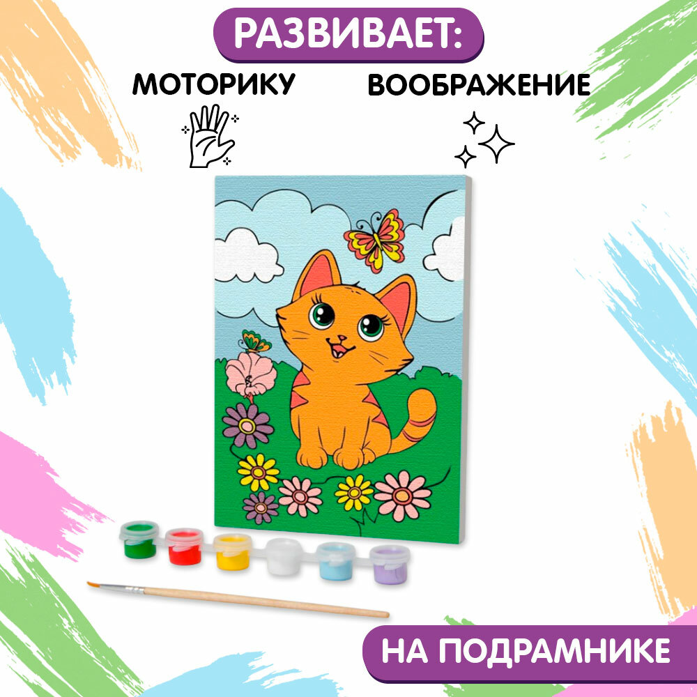 10 цен на Картина по номерам "Котенок с бабочкой", размер: 21х15 см, 6 цветов красок, для детей и малышей