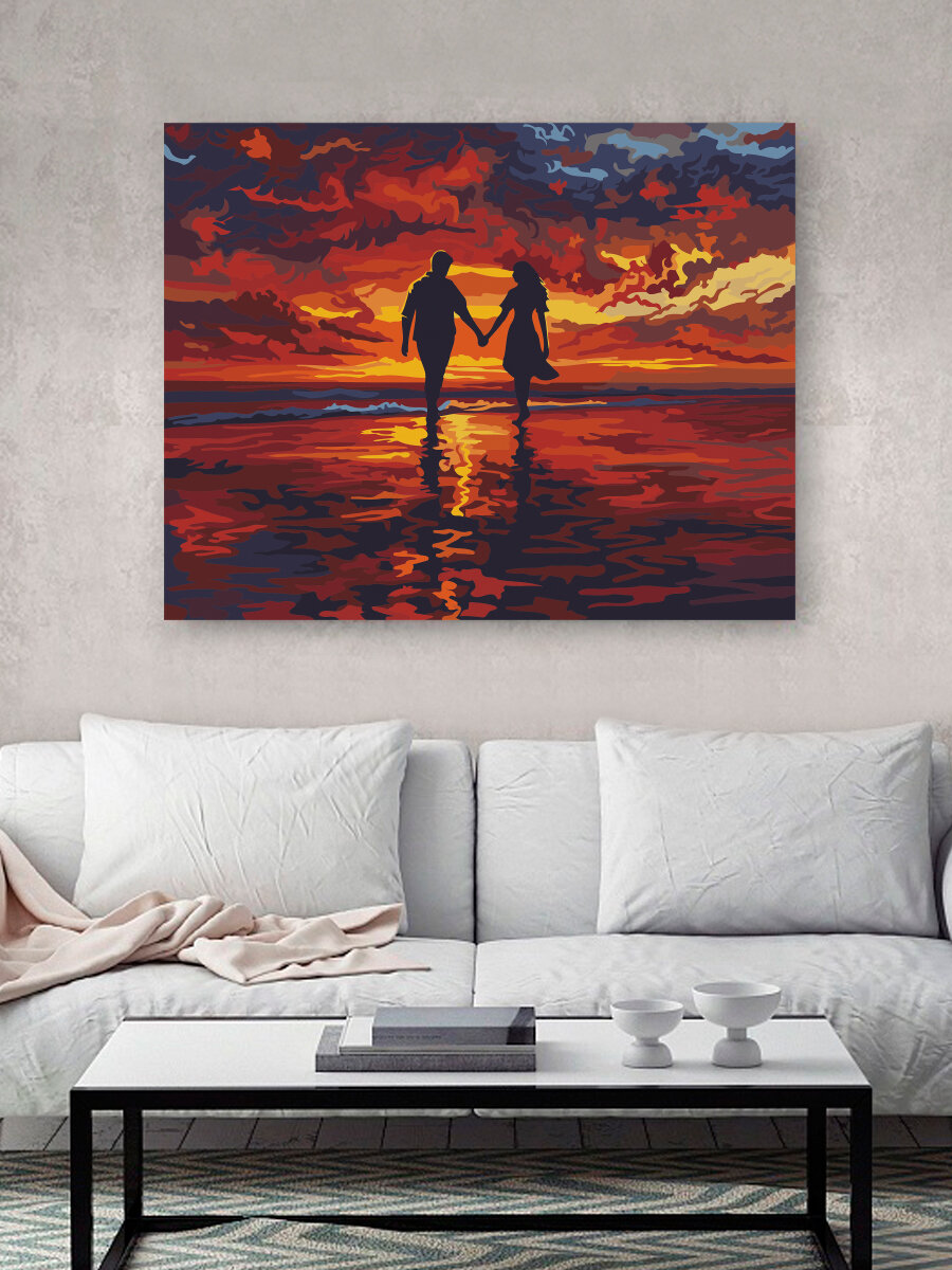 Отзывы на Картина по номерам на холсте "Закат на двоих" деревянный подрамник 40х50 см