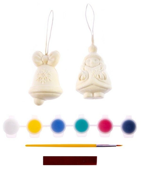Набор новогодних шаров под раскраску 2 шт "Пара №6" с подвесом + краска 6 цв по 2 мл, кисть 346246