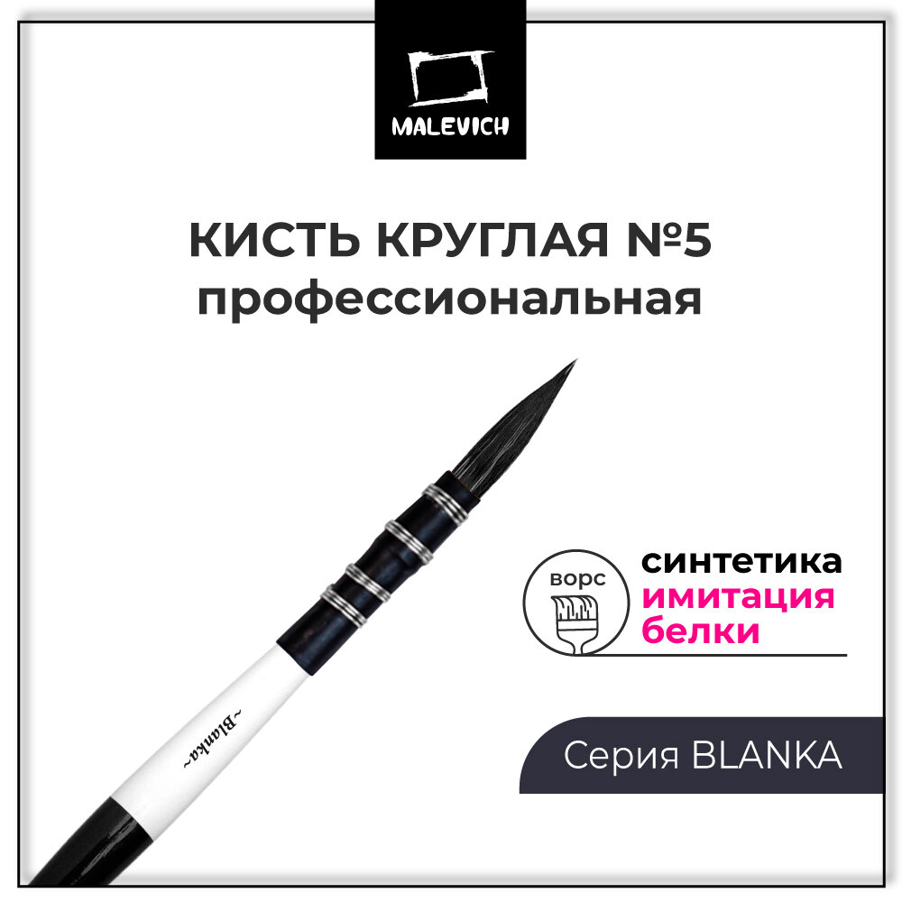 Кисть для акварели профессиональная Малевичъ Blanca, имитация белки, круглая №5 информация: