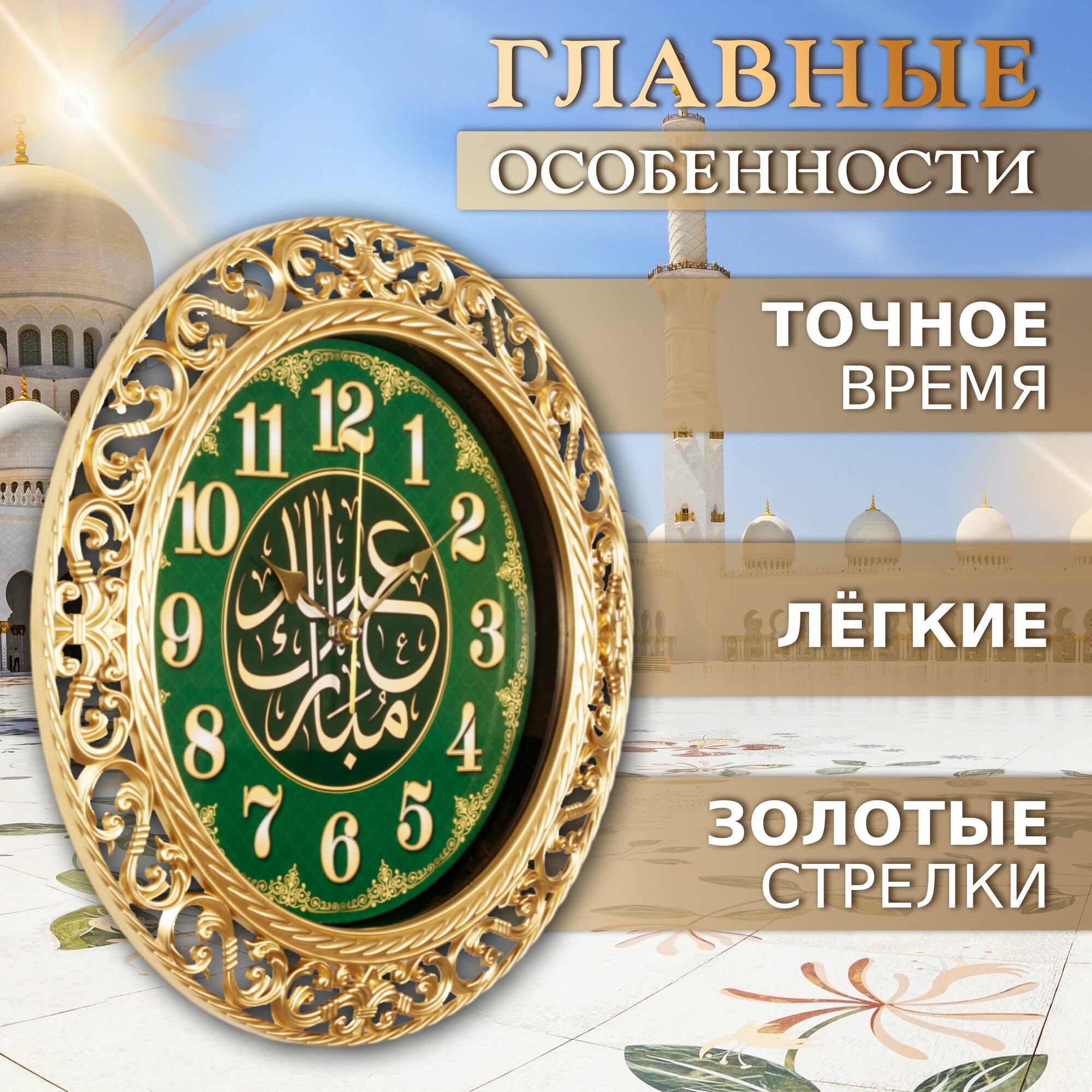 Часы настенные большие Молитва 39см , часы мусульманские настенные Рубин бесшумные открытая стрелка 1 399 ₽
