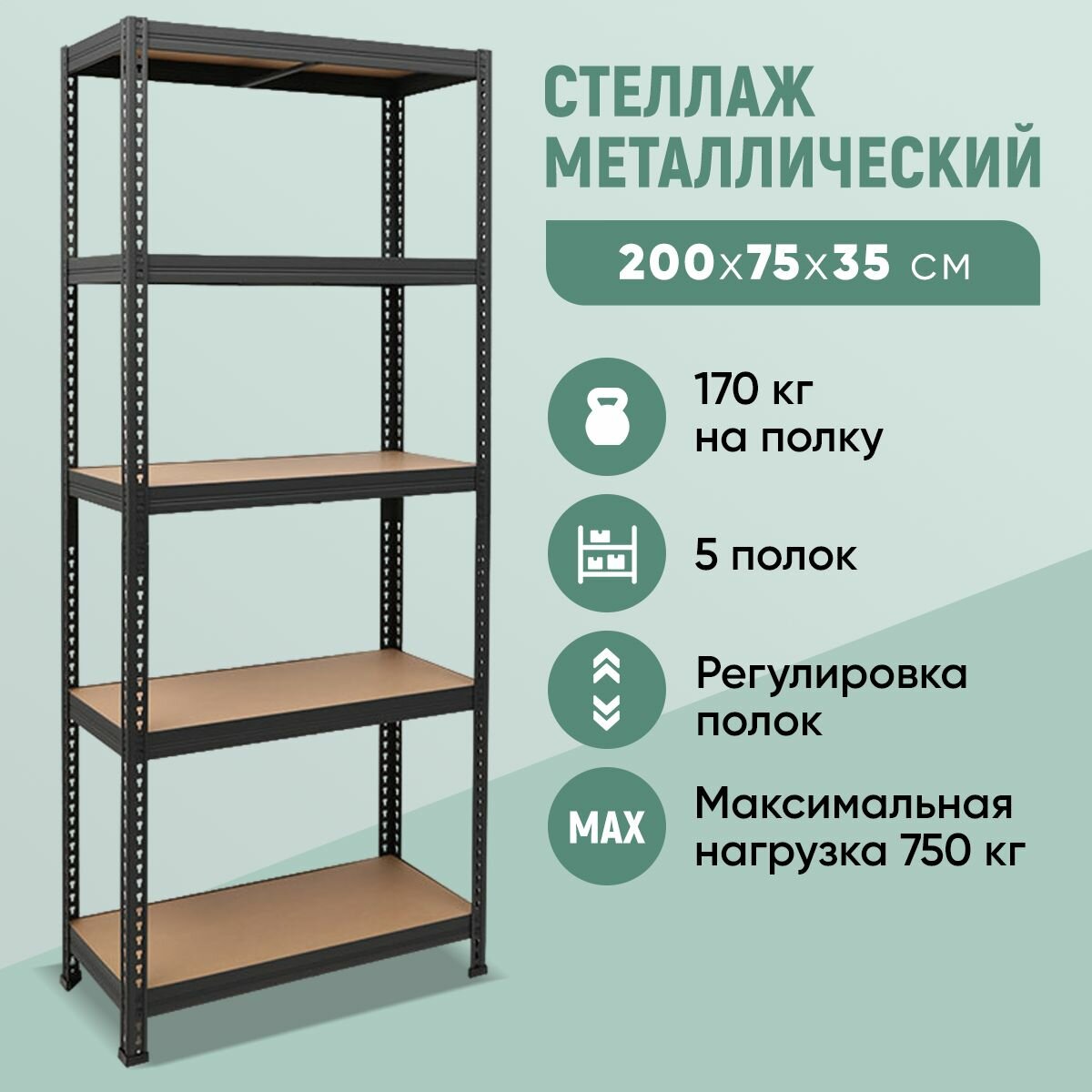 | Допустимая нагрузка на стеллаж | 750 кг |