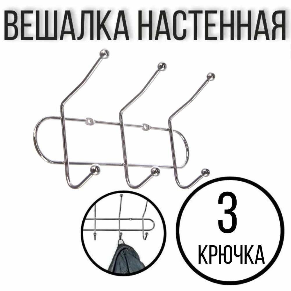 10 цен на Вешалка настенная прочная на 3 двойных крючка, 24,5 см.