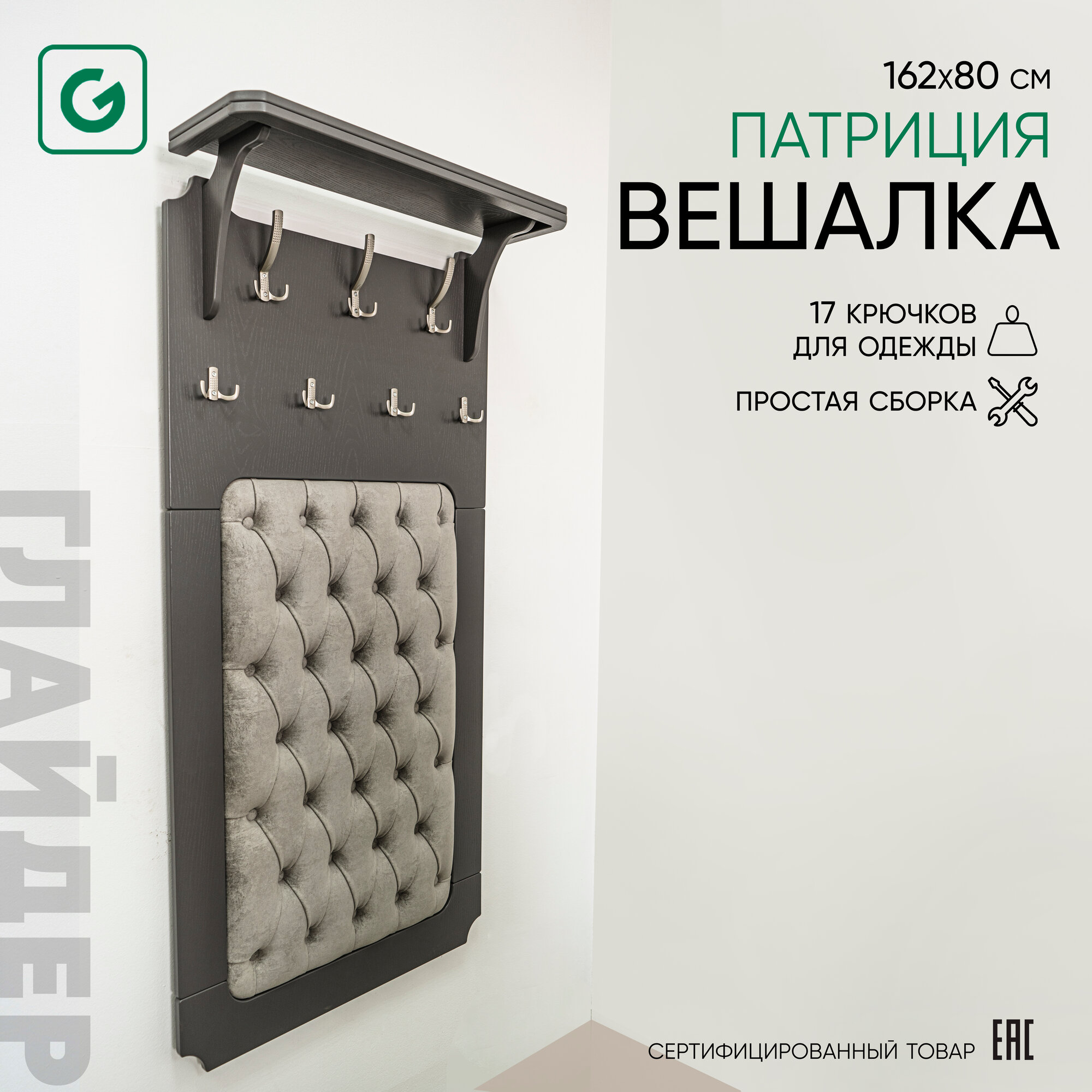 Вешалка настенная Glider Патриция с полкой, 7 крючков, цвет серый/белый , МДФ 14 576 ₽