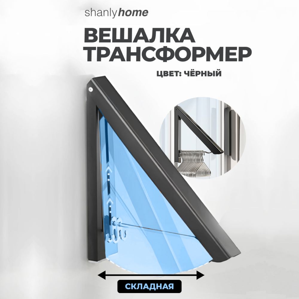 Складная вешалка настенная для одежды Shanly, черный рейл 3 586 ₽