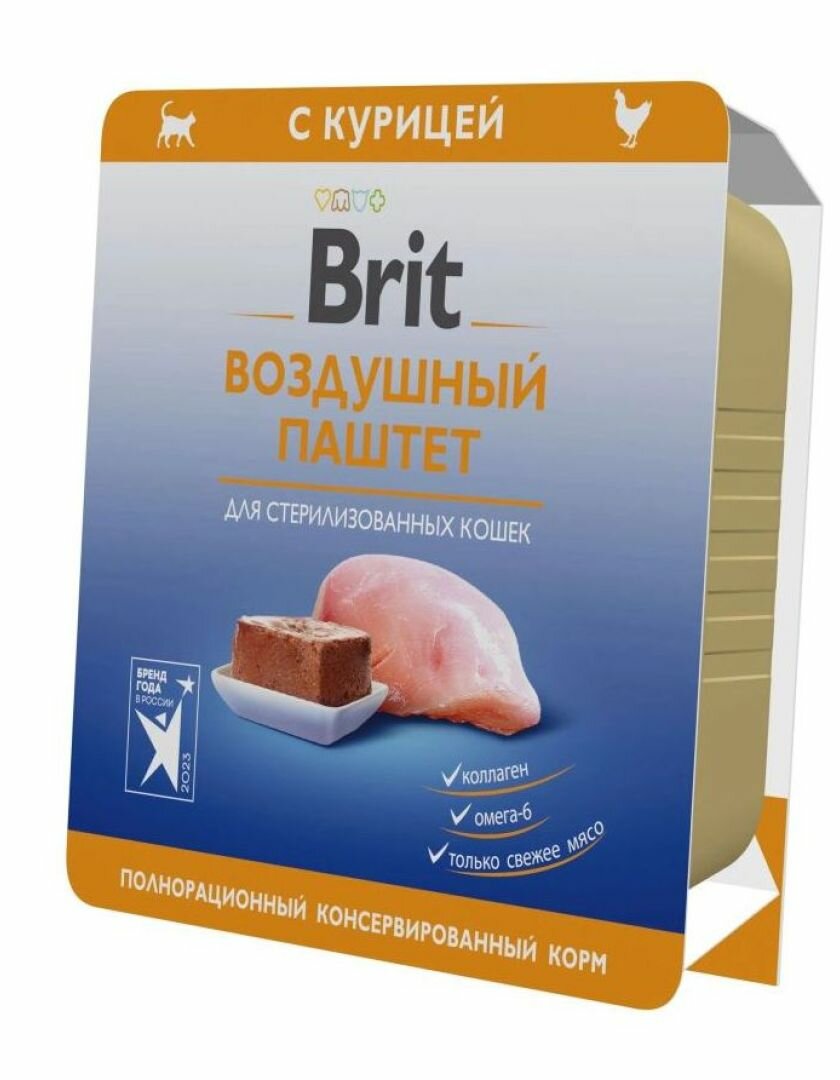 10 цен на Brit воздушный паштет для стерилизованных кошек и кастрированных котов с курицей - 100 г