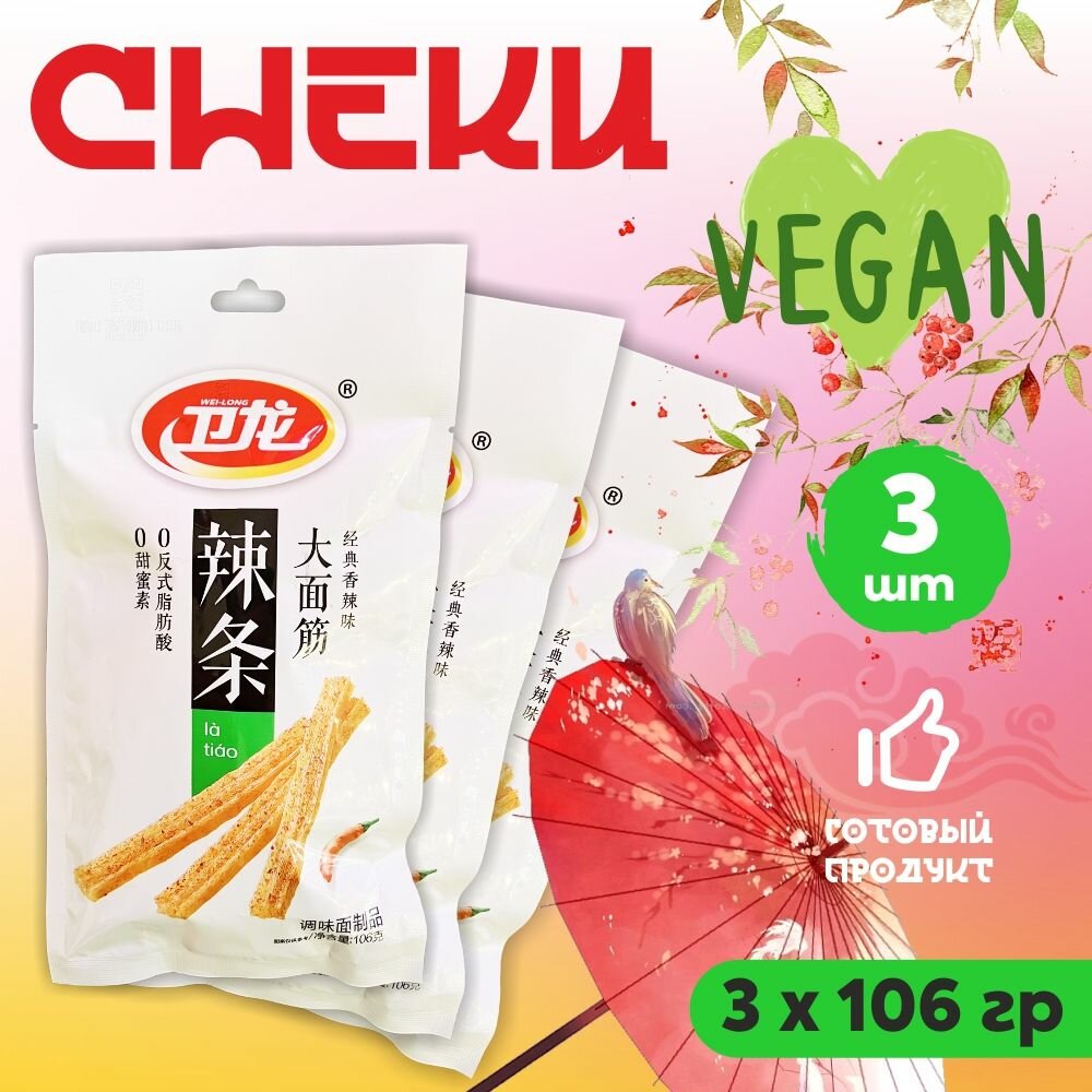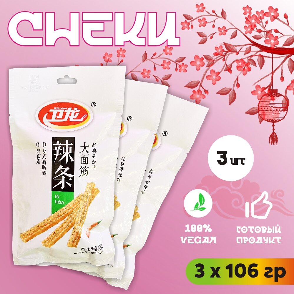 Китайские снеки Wei Long La Tiao острые из соевого мяса 3 шт по 106 гр / белая информация: