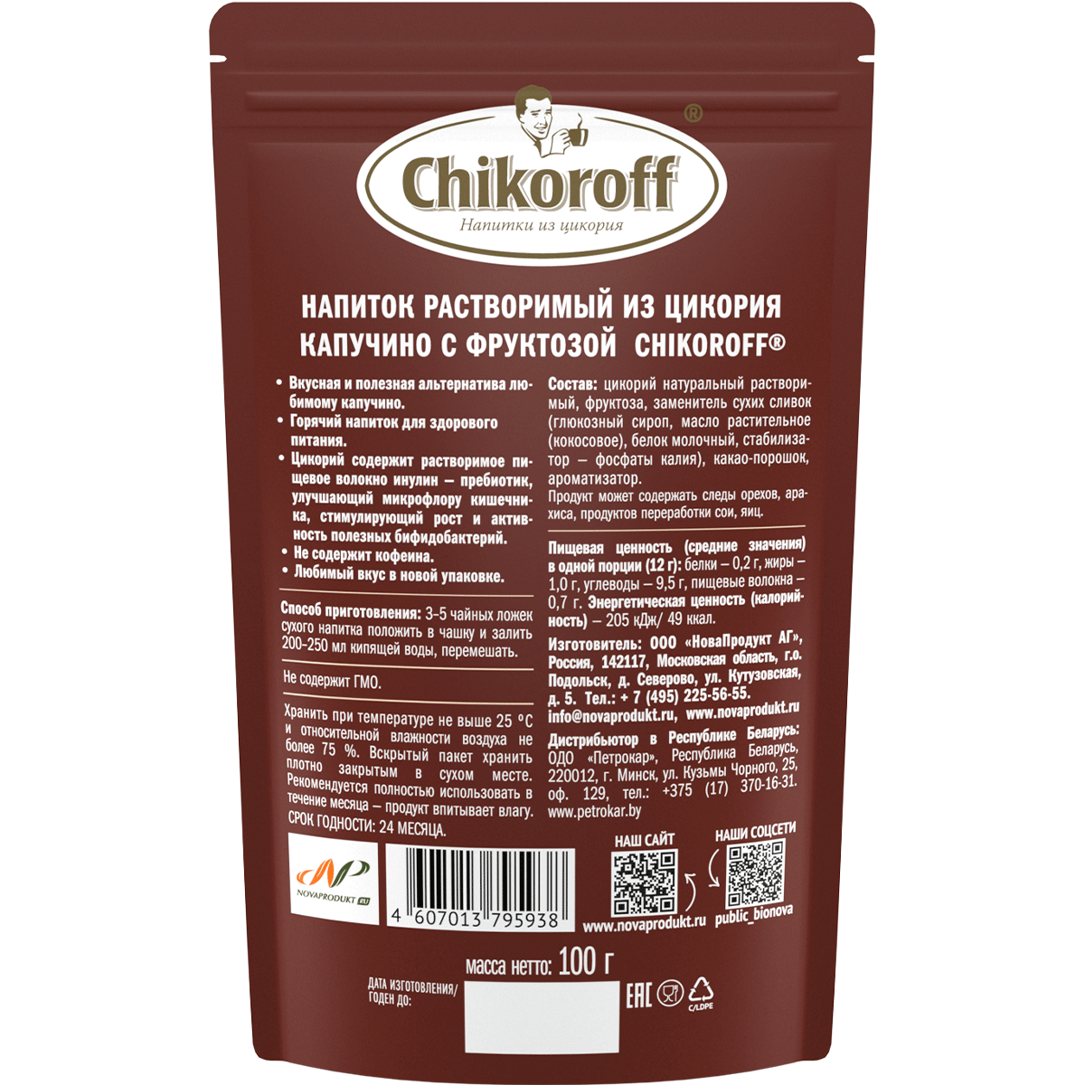Цикорий Chikoroff растворимый порошкообразный Капучино с фруктозой, в пакетиках, пакет, 100 г информация: