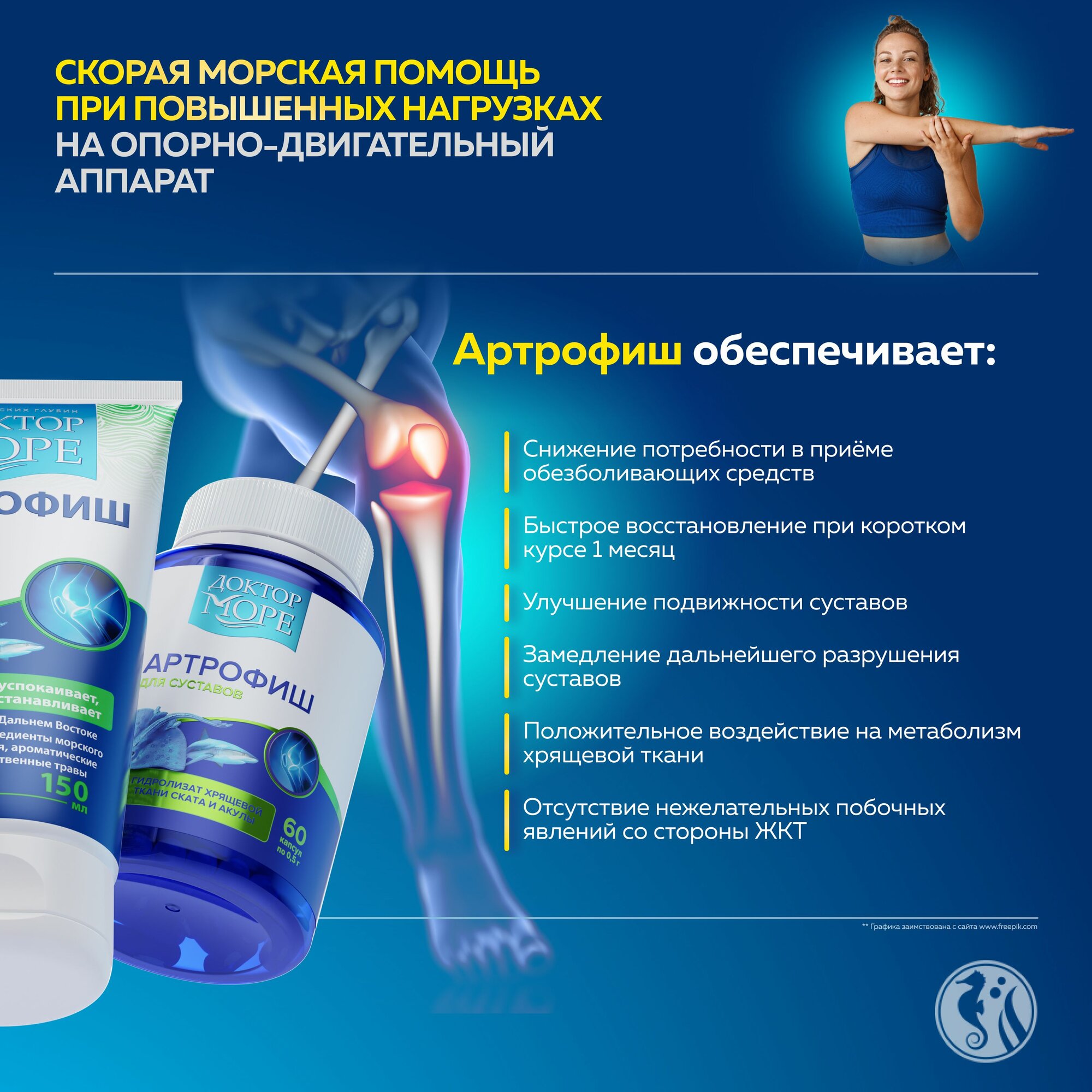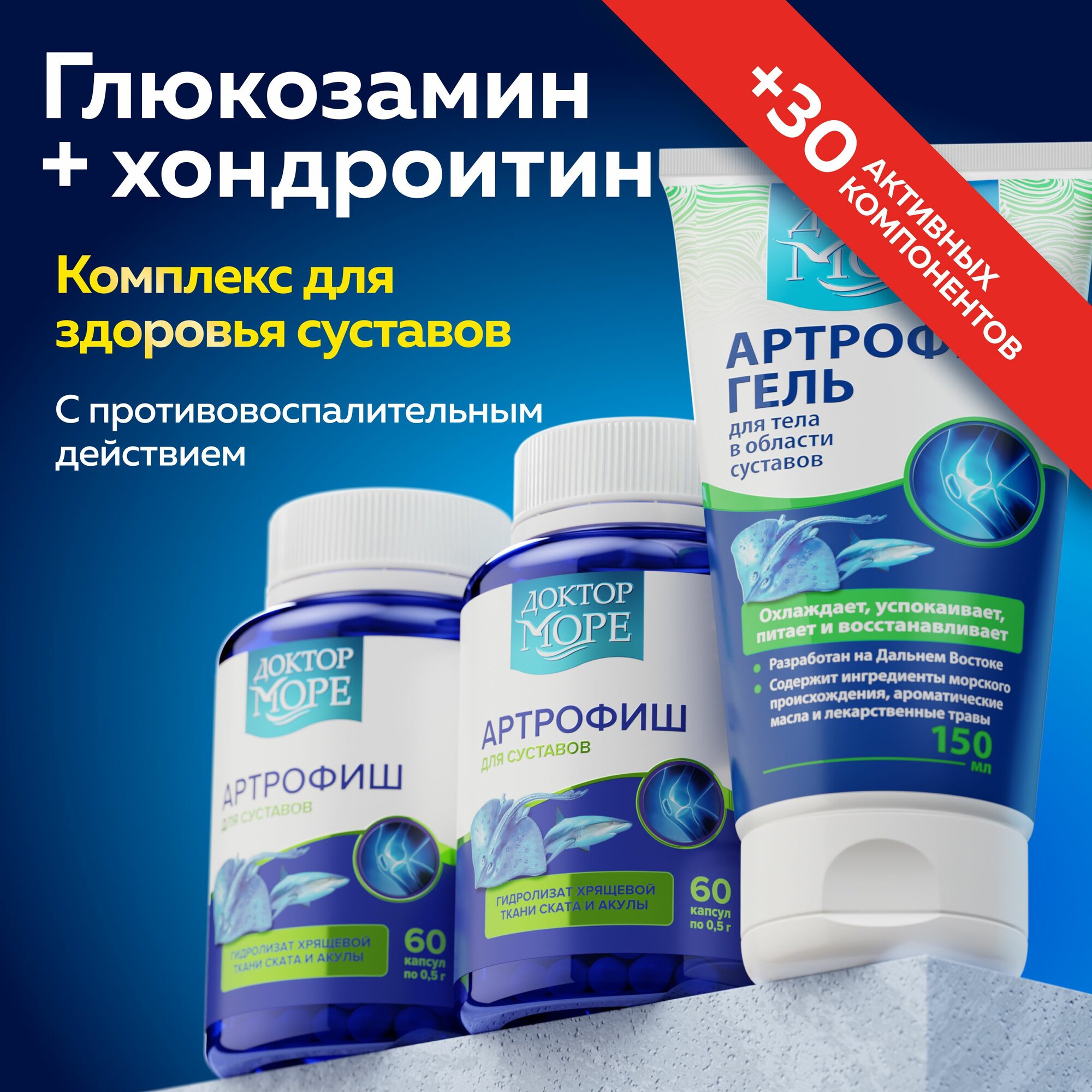 Артрофиш Доктор Море курсовой набор " Супервыгодный " Морской хондропротектор для суставов, коллаген в капсулах, глюкозамин, хондроитин, мсм, витамины для суставов и связок информация: