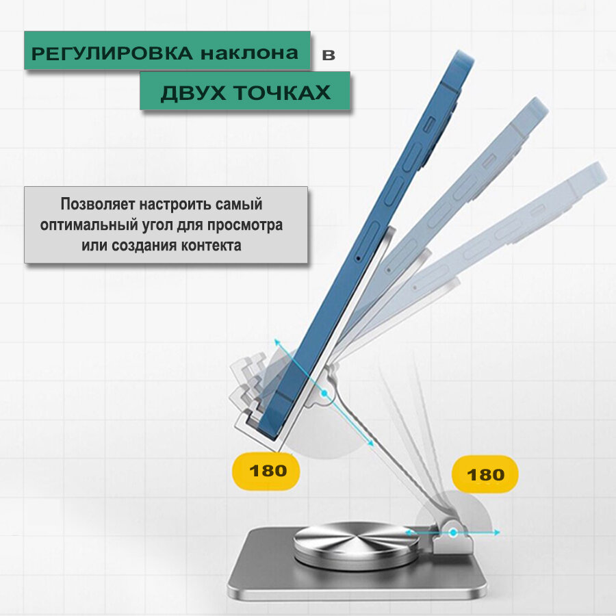 Подставка для телефона и планшета 8-13 дюймов, металлическая, вращается на 360 информация:
