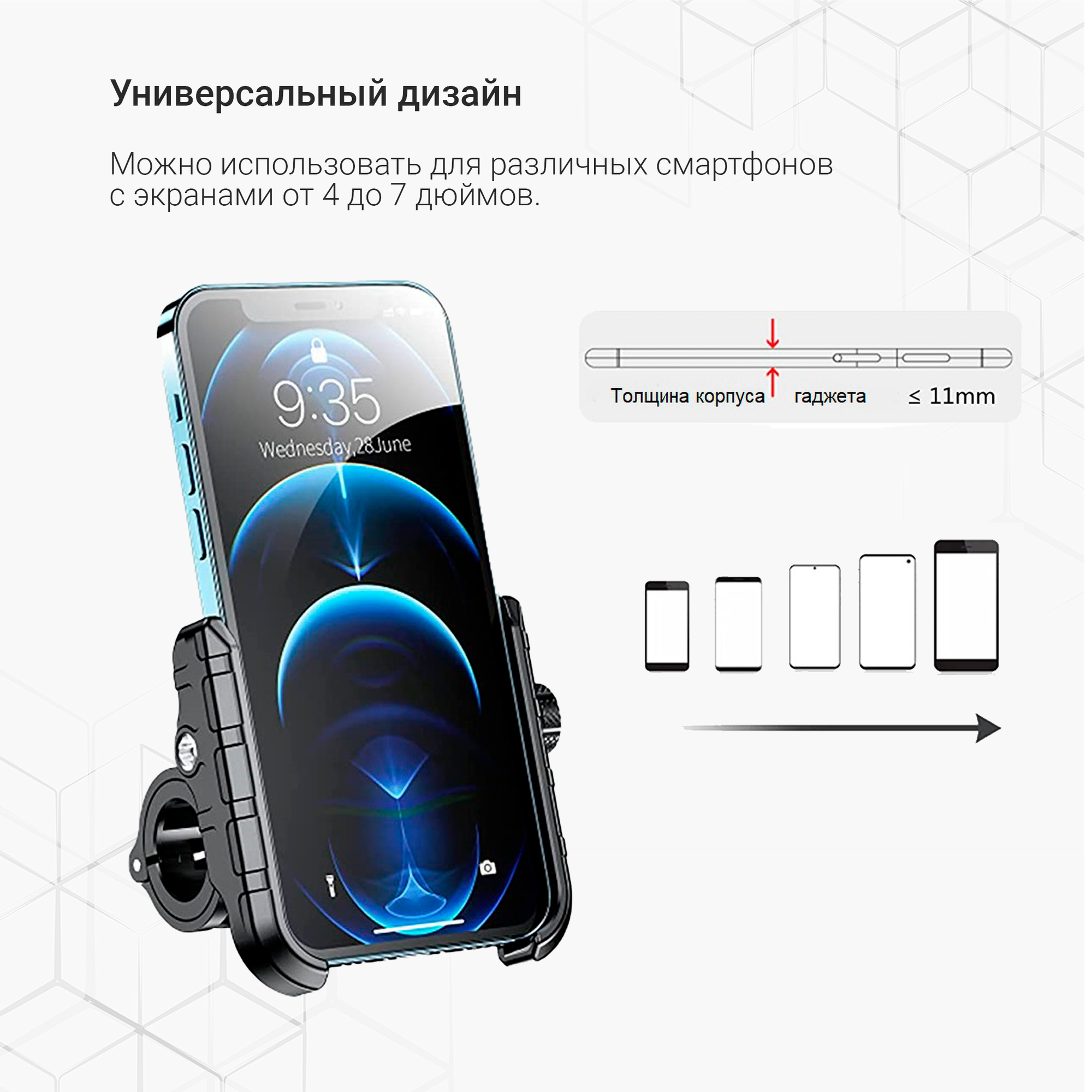 | Место крепления | зеркало заднего вида, руль, трубчатый элемент, универсальное |