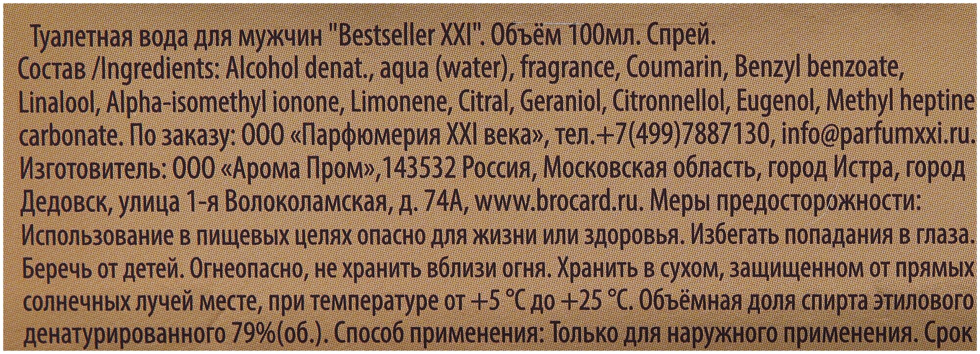 Парфюмерия XXI века Мужской Bestseller XXI Туалетная вода (edt) 100мл информация: