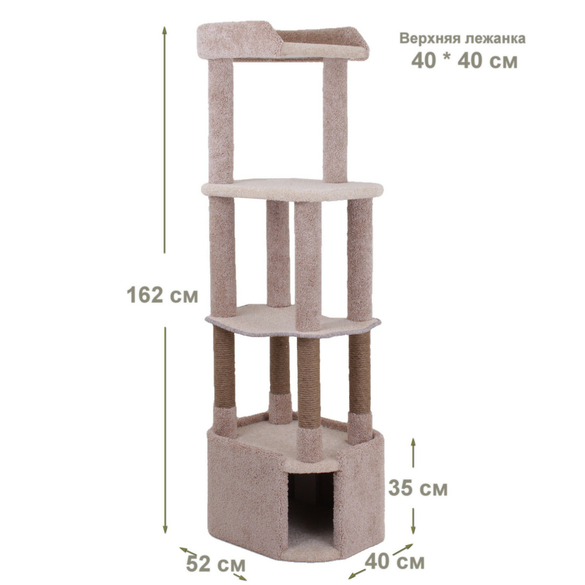 Когтеточка для кошек с домиком, гамаком и лежанками "Етк Зоо" Kiss 162, 40*52*162, бежевый ковролин, джут 8 999 ₽