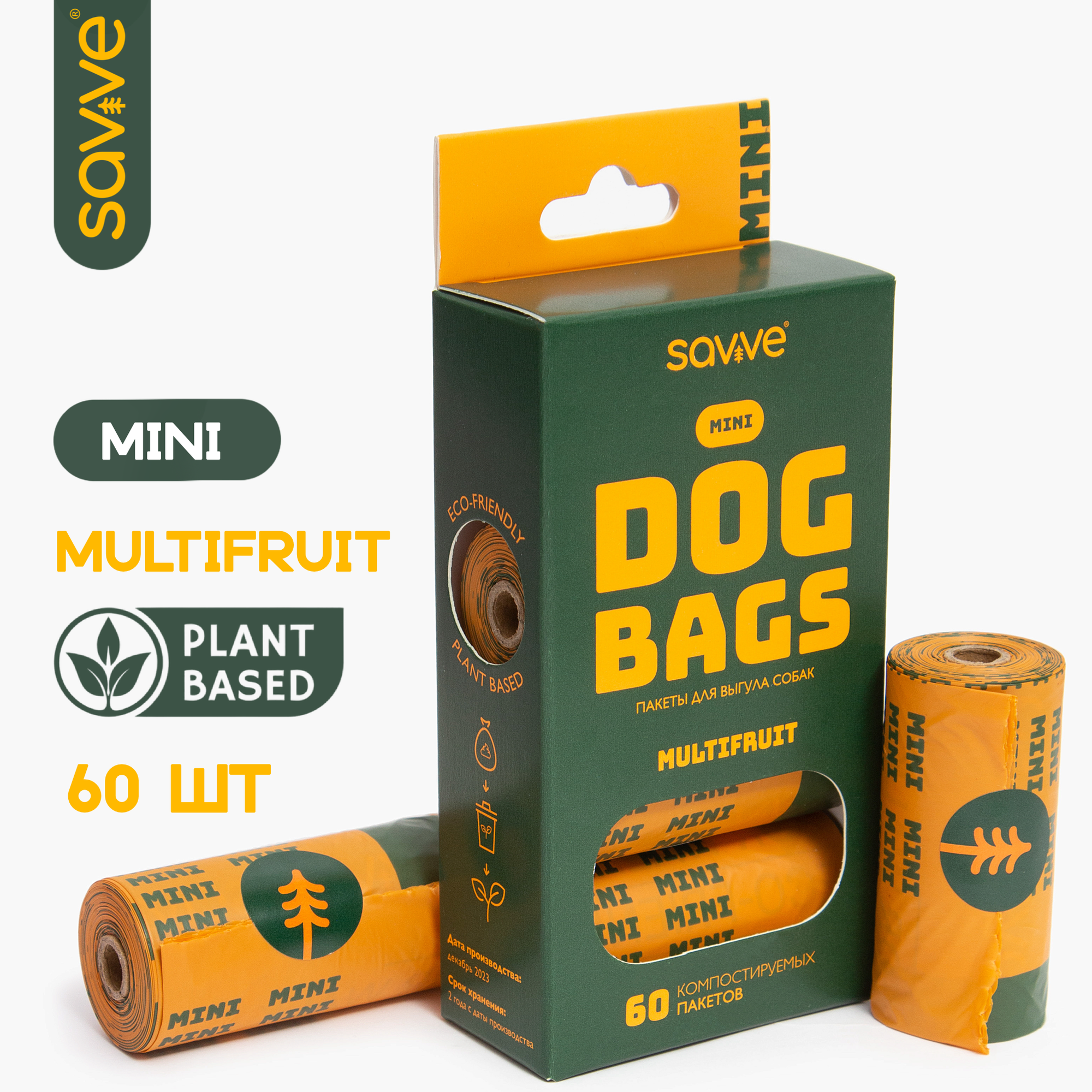 Биоразлагаемые пакеты SAVVE Mini на органической основе для выгула собак, мультифрукт 60 штук 550 ₽