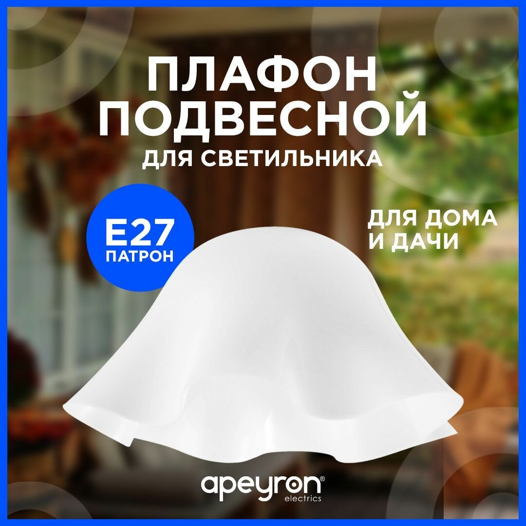 Запасной плафон Apeyron 16-39 из пластика с цоколем 1хЕ27, белый, d300х210мм