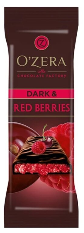 Горький шоколад KDV с начинкой из малины и вишни O'Zera - Dark & Red berries, 15 шт по 40 г