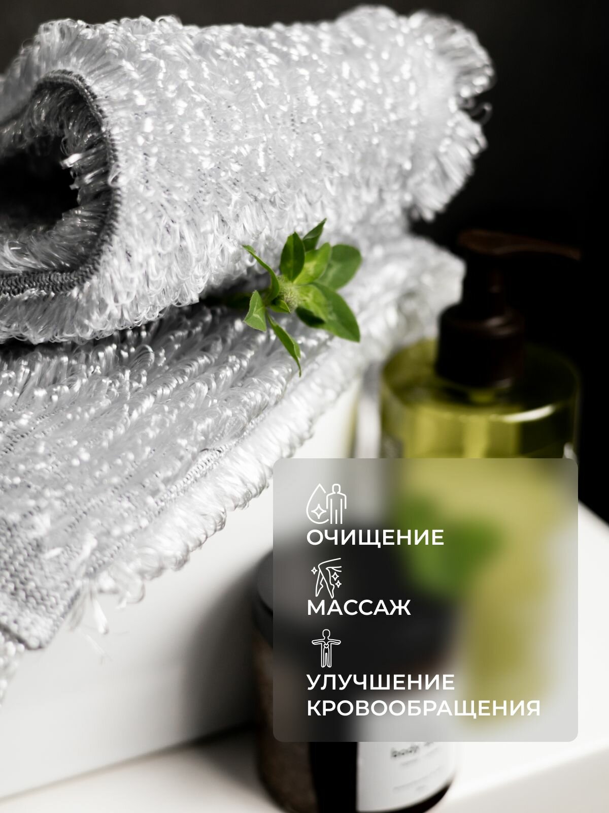 Мочалка-варежка массажная 21х11.5 см. бамбуковый уголь. китайская крапива. цвет серый 5445642