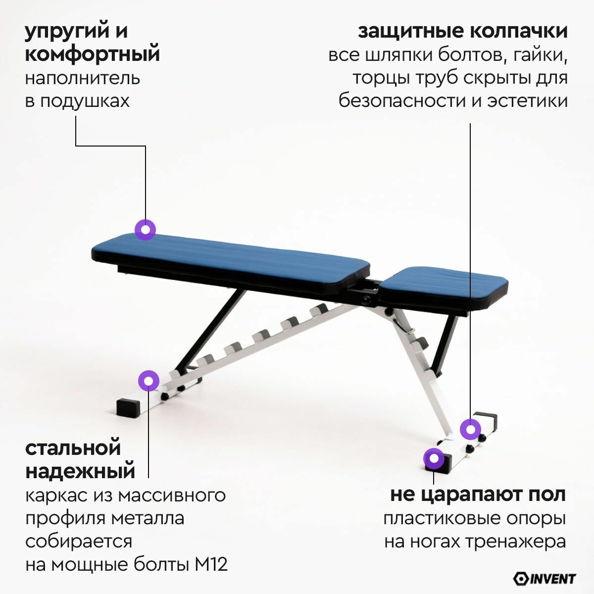 Отзывы на Скамья для жима складная спортивная регулируемая, тренажер силовой INVENT SK-02 белый