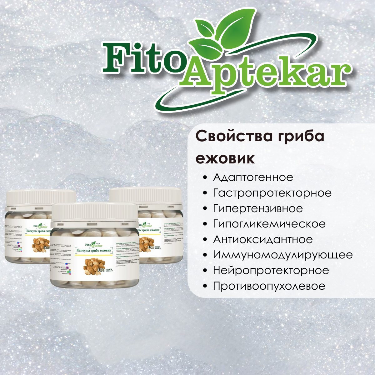 Ежовик гриб гребенчатый в капсулах Фито-Аптекарь, натуральный пищевой продукт 100 шт*3 упаковки информация: