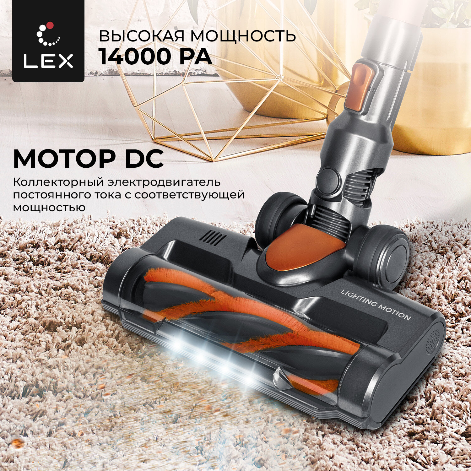 10 цен на Пылесос беспроводной вертикальный LEX LXVCS 7071, для сухой уборки, 2 скорости, подсветка зоны уборки, емкость аккумулятора, 2200 мАч, 3 насадки, цвет-перламутровый песок.